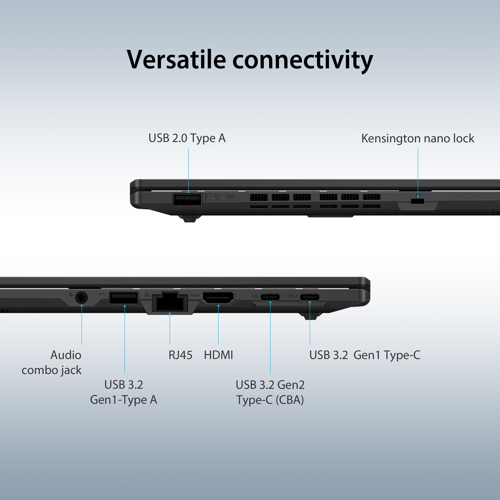 ExpertBook B1402 is loaded with I/O ports for productivity enhancement. These include USB Type-A, USB Type-C, and an HDMI output, plus wired network connectivity with a unique MAC address for easy device management.