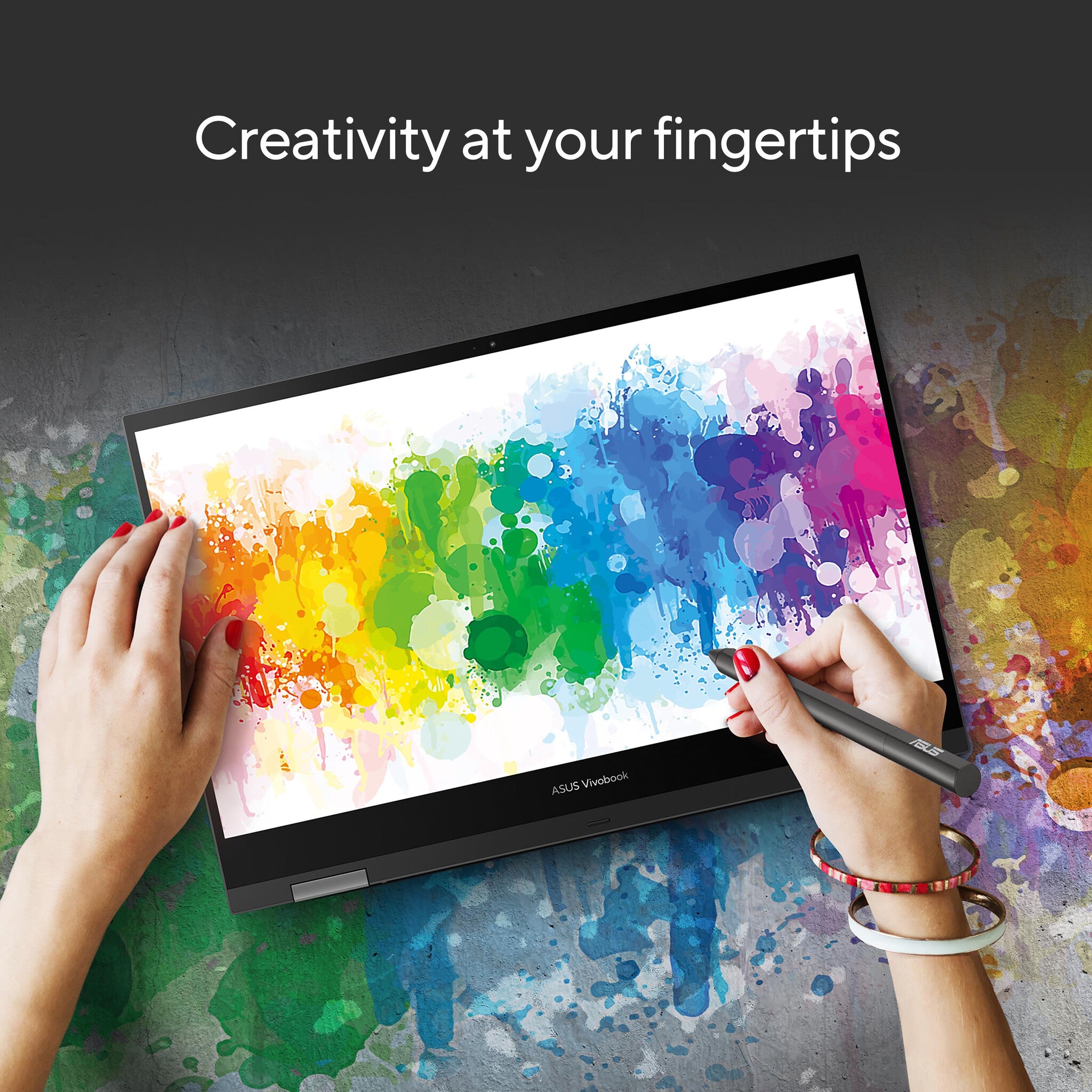 Explore your world with Vivobook Go 14 Flip, the flippable laptop that gives you 360° of freedom! At just 16.9 mm thin and weighing only 1.5 kg, it’s no fuss to take anywhere, and its zippy Intel® Celeron processor gets everything done quickly, whether for work or play. With its trendy Quiet Blue color and tough 360° hinge, the versatile Vivobook Go 14 Flip is your laptop, your tablet — or anything in between!