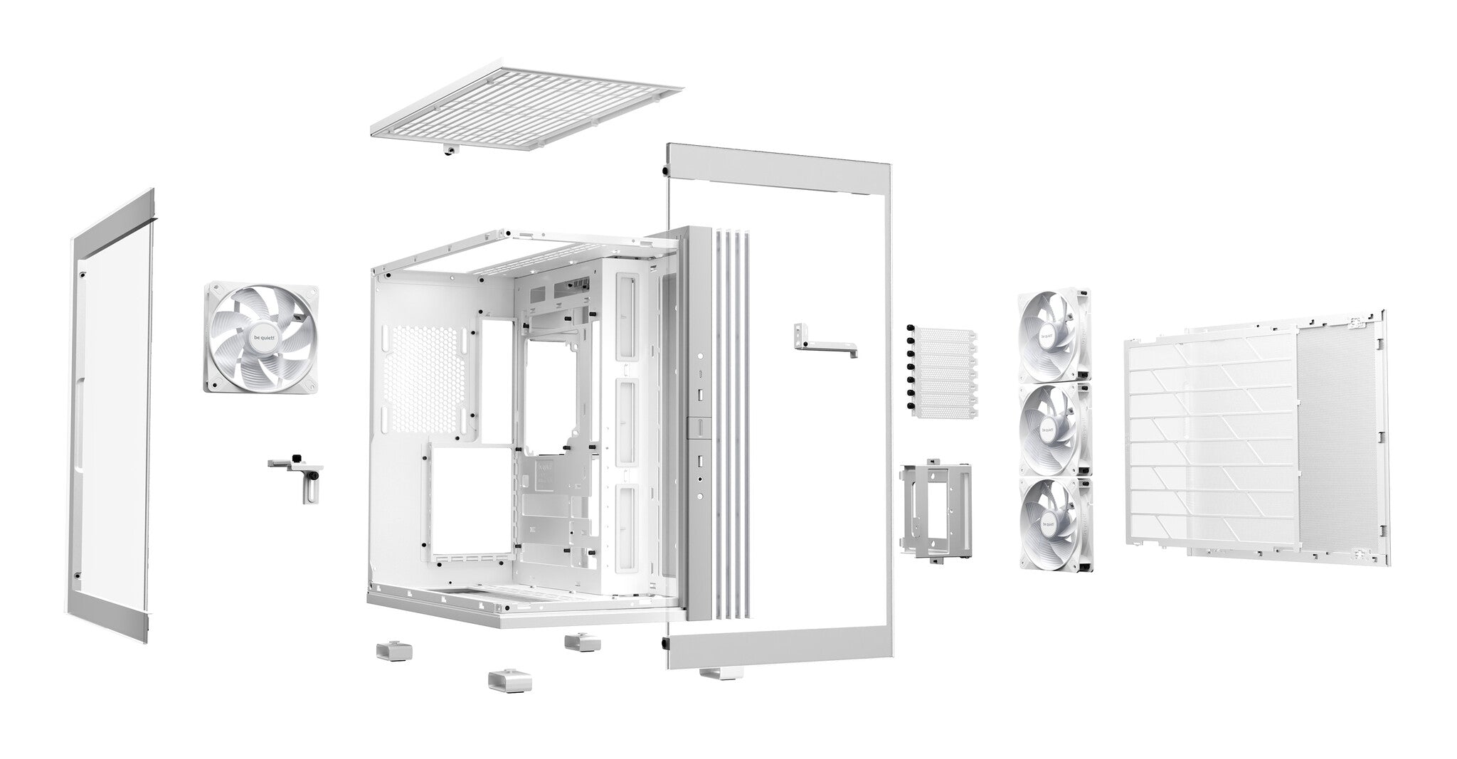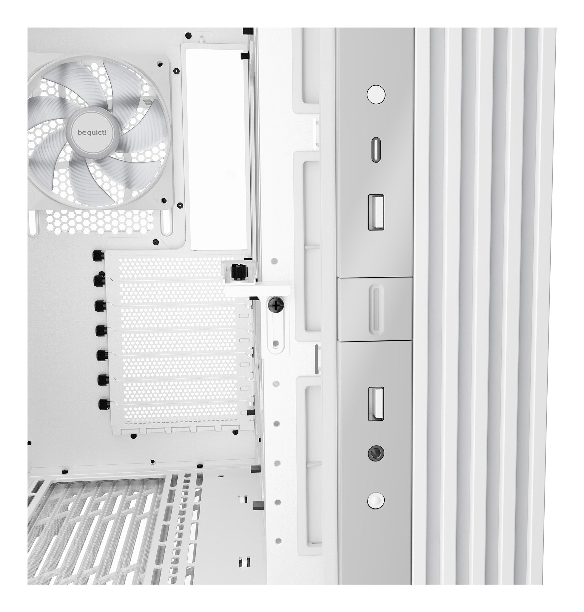 Light Base 600 LX White features a flexible VGA holder that subtly prevents your GPU from sagging. The best part: This holder works in any orientation and with a horizontally or vertically installed graphics card. The result is a clean look even if you use big and heavy graphics cards.