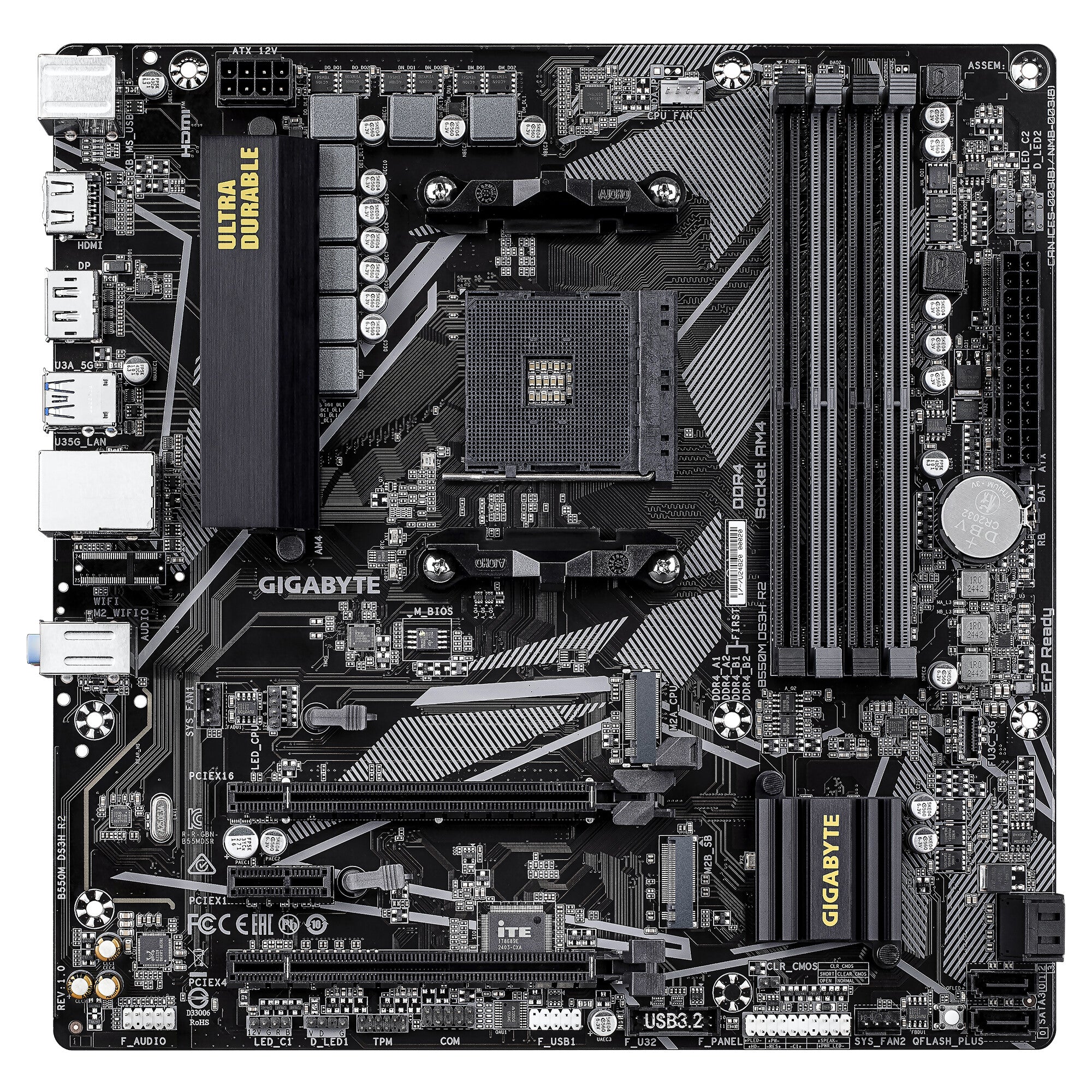 GIGABYTE B550M DS3H R2 Motherboard - AMD Ryzen 5000 CPUs, 5+3 Phases VRM, up to 4733MHz DDR4 (O.C.), 1xPCIe 4.0 + 1xPCIe 3.0 M.2, 1GbE LAN, USB 3.2 Gen 1
