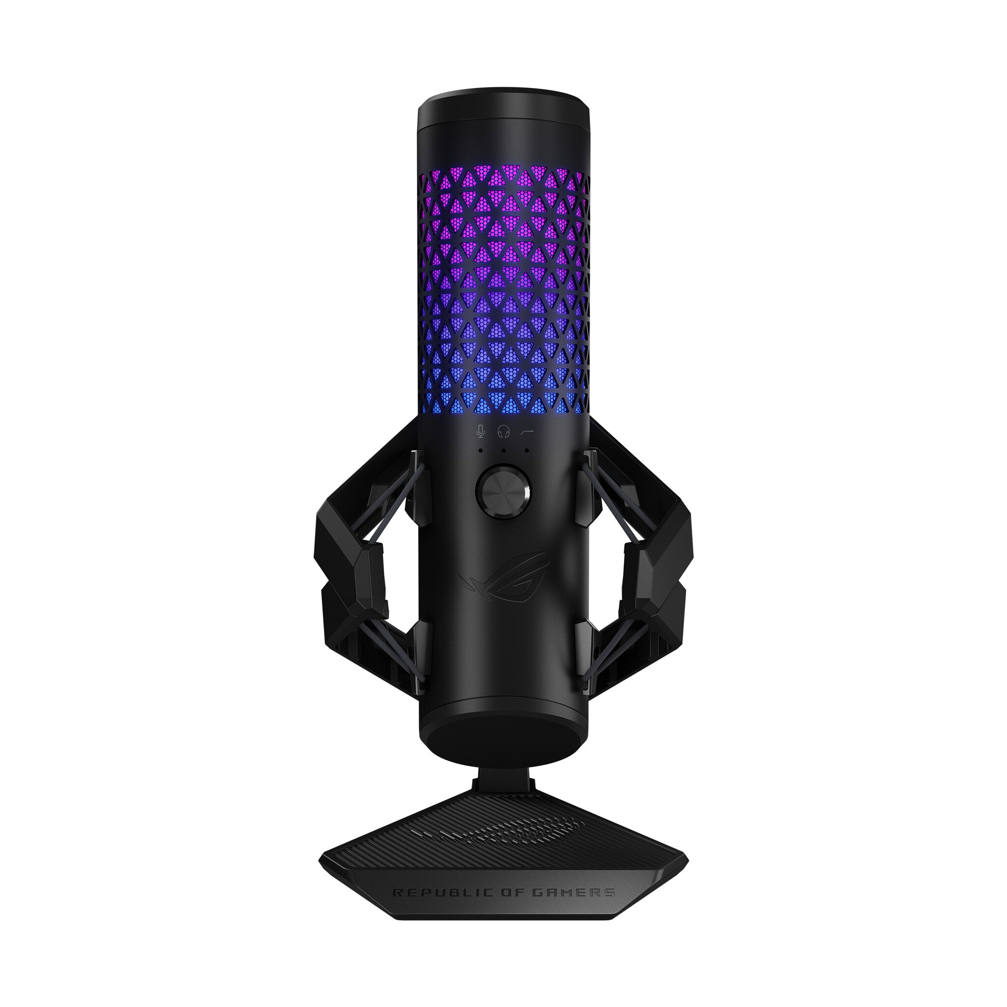 The ROG Carnyx is a professional-grade cardioid USB microphone that features a 25 mm condenser capsule and 192 kHz / 24-bit sampling rate to deliver natural and rich sound. The Carnyx offers clean and uninterrupted recordings thanks to a high-pass filter that reduces low-frequency noise, a built-in pop filter to prevent vocal plosives, along with a metal shock mount to minimize external vibrations.