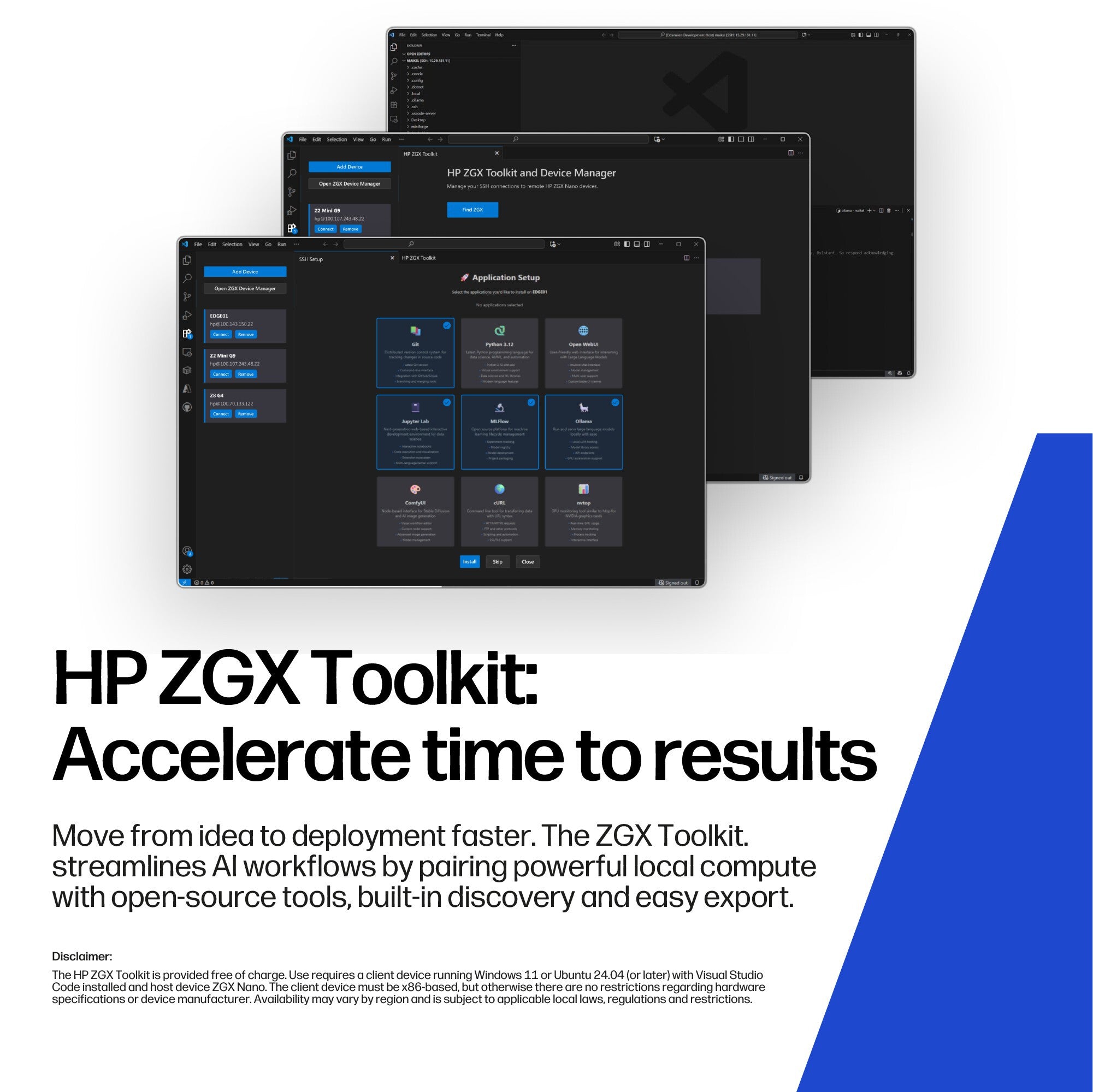 Accelerate AI workflows with HP ZGX Nano and ZGX Toolkit[1], high-performance local compute combined with a curated open-source stack for prototyping, fine-tuning and inferencing. Built-in IP discovery, model export and local serving reduce friction, ensuring repeatable, deployment-ready results.