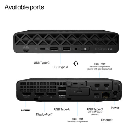 HP EliteDesk 8 Mini G1a AMD Ryzen™ 5 220 8 GB DDR5-SDRAM 256 GB SSD Windows 11 Pro Mini PC Black