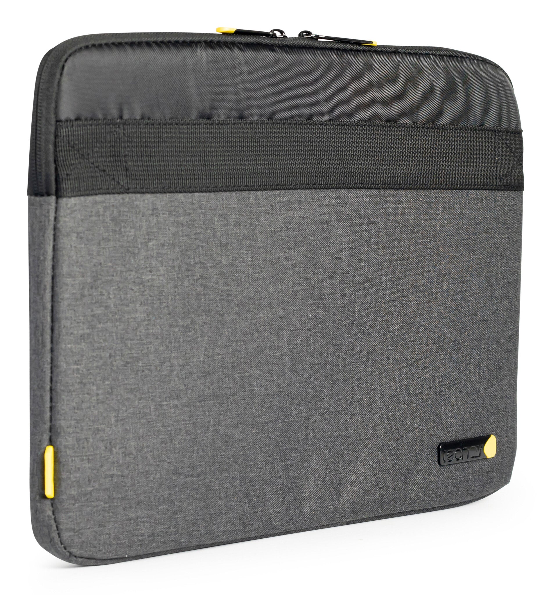 Want to be more sustainable? Meet the new 14.1" Eco sleeve from techair. Made from recycled plastic bottles this 2 tone styled products contrasts a textured gray main fabric with a webbing band and a finer woven black fabric. As usual the product comes with a lifetime warranty. Sustainability without compromise, that's function with emotion.