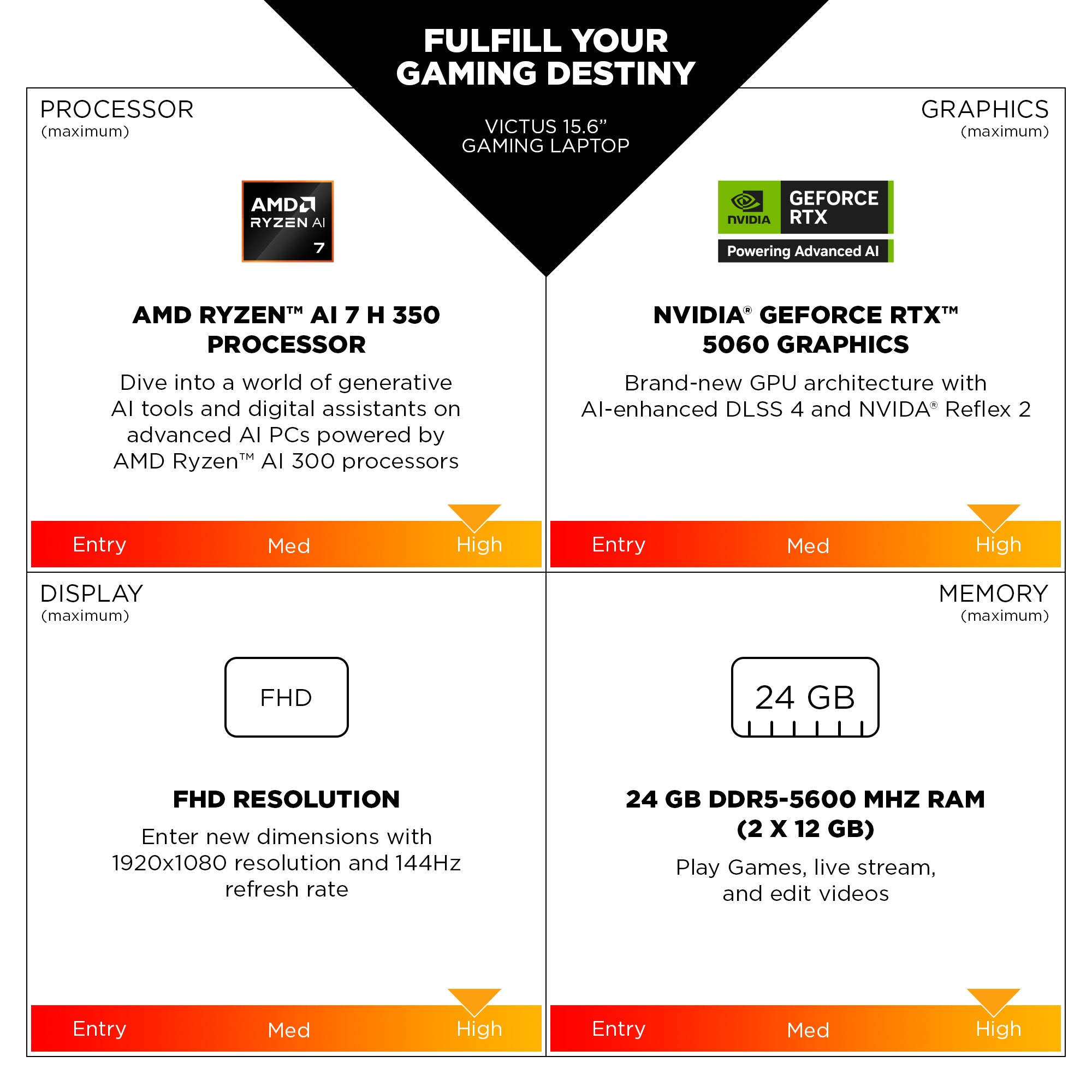 The HP Victus Laptop is made for great PC gaming on the go. This sleek machine touts a powerful AMD Processor[1] and modern graphics. This laptop’s design is just as impressive as its hardware with plenty of color options [2], updated thermals and a webcam with Temporal Noise Reduction.