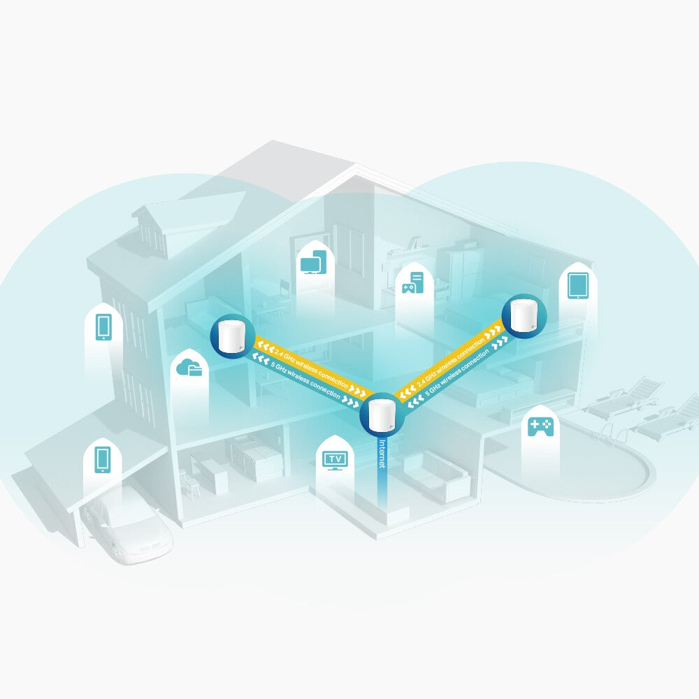TP-Link Mesh means Deco units work together to form one unified network. Your phone or tablet automatically connects to the fastest Deco as you move through your home, creating a truly seamless Wi-Fi experience.