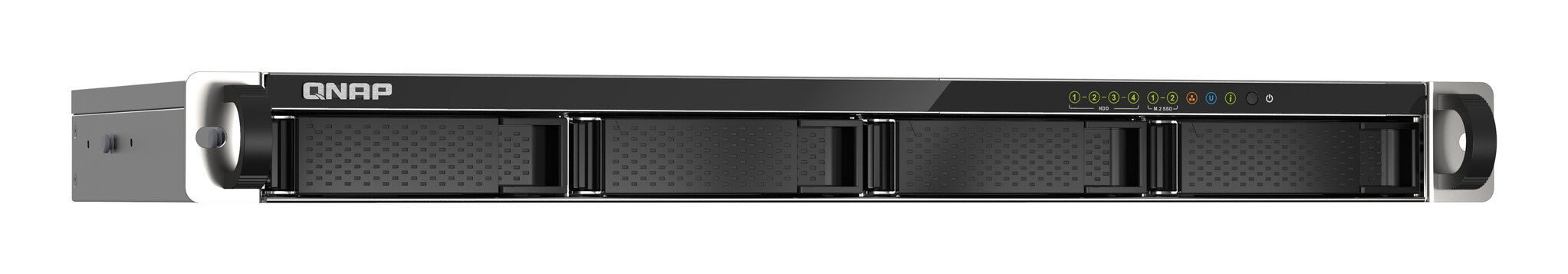 The compact and feature-rich TS-435XeU provides a professional-grade quad-core NAS solution in short depth rackmount form factor. The native 10GbE SFP+ and 2.5GbE connectivity alongside M.2 NVMe SSD slots that enable cache acceleration allows businesses to efficiently tackle everyday tasks like file backup/restore and to boost team collaboration with higher productivity. The space-efficient short depth design makes the TS-435XeU easy to install in small media cabinets or places with a lot of cabling. Supporting abundant business applications (including file sharing and sync, snapshot protection, containerization, cloud storage gateways, and video streaming), expandable storage capacity, and install-on-demand apps, the TS-435XeU is an ideal cost-effective entry-level rackmount NAS.