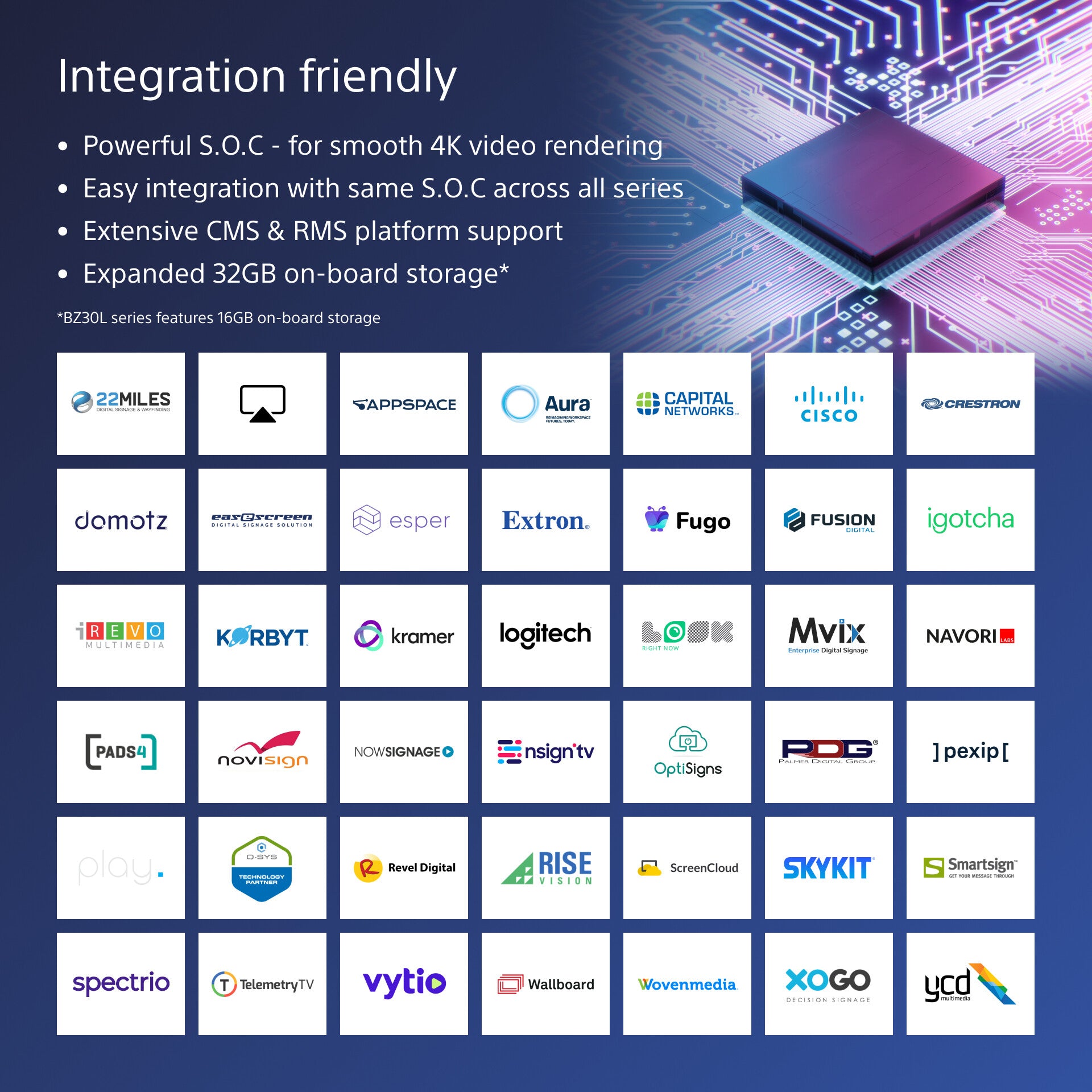FW-85BZ40L is made for today’s connected world. There’s seamless support for today’s leading automation and control platforms, while open APIs simplify integration with other vendor solutions.