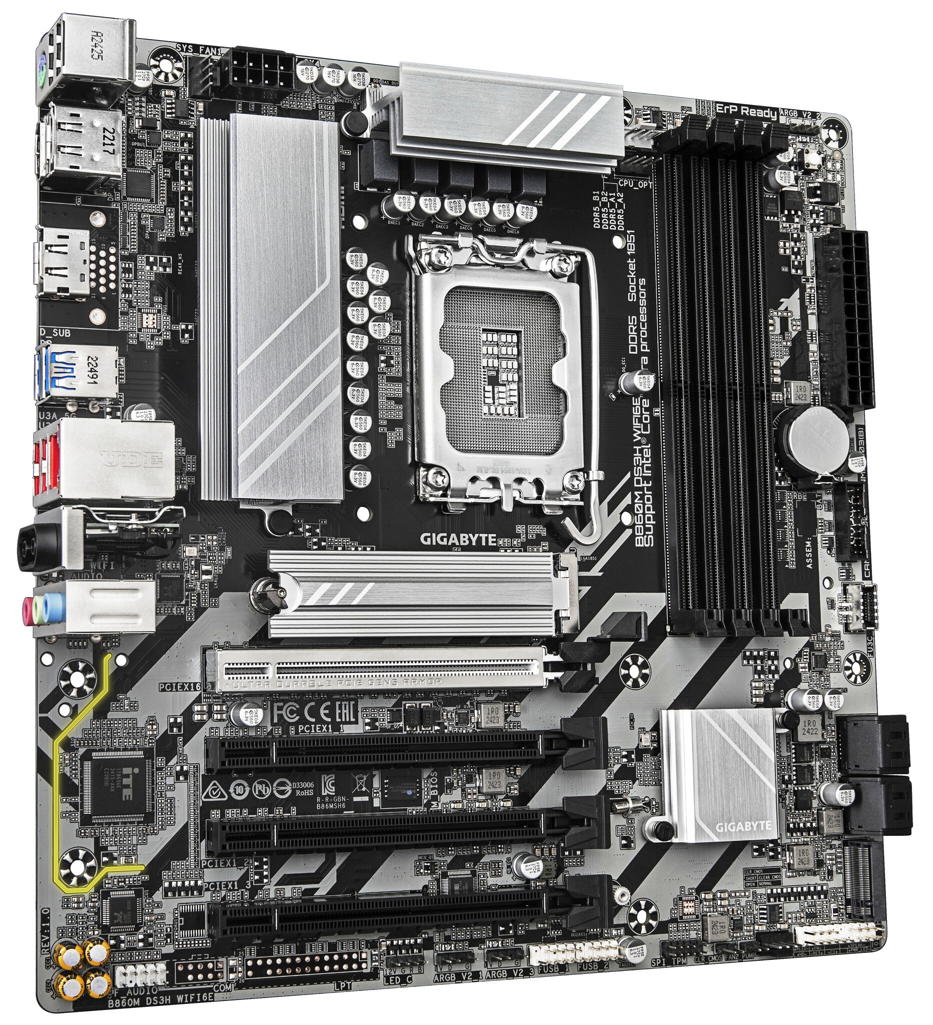 GIGABYTE B860M DS3H WIFI6E Motherboard - Intel Core Ultra Series CPUs, 5+1+2+1 Phases VRM, up to 9066MHz DDR5, 1xPCIe 5.0 + 1xPCIe 4.0 M.2, 2.5GbE LAN, WIFI 6E, USB 3.2 Gen 2
