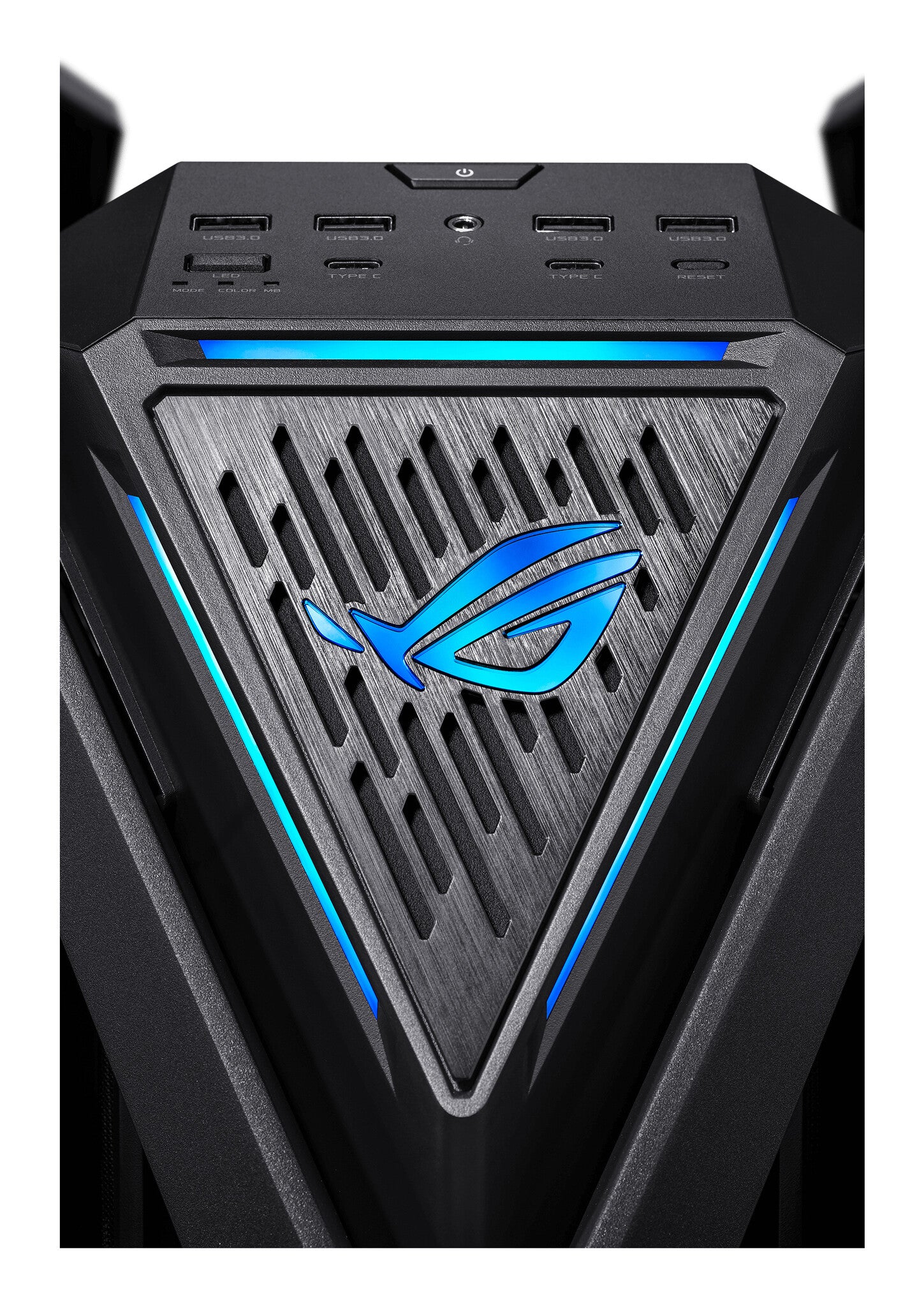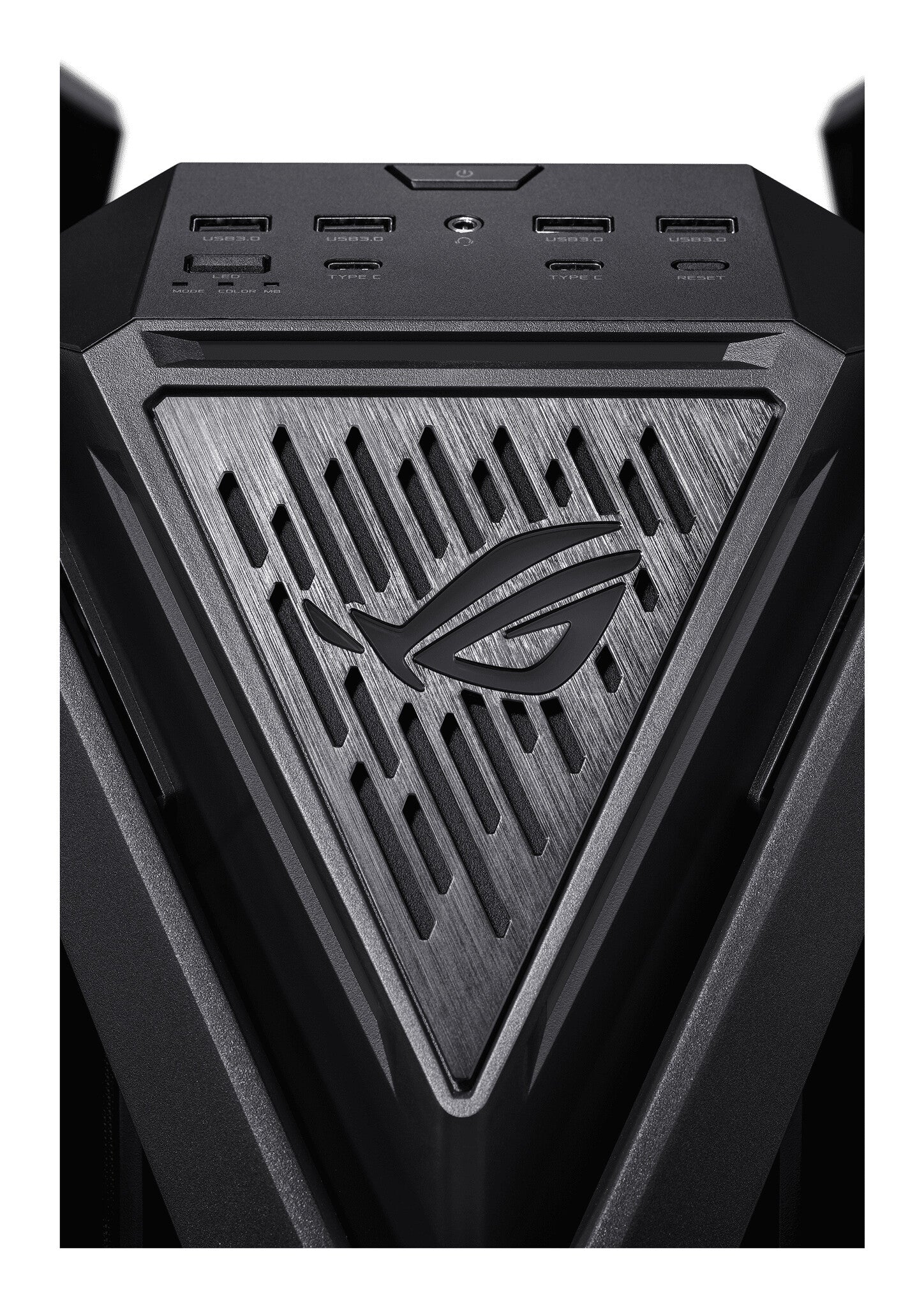 A front side air intake can provide ample ventilation to get just the right balance of temperatures for your system and graphics cards. This integrates tightly into a bold new look with features like the distinctive diamond-shaped badge on the front, stamped with the famous ROG logo and surrounded by diagonal slashes.