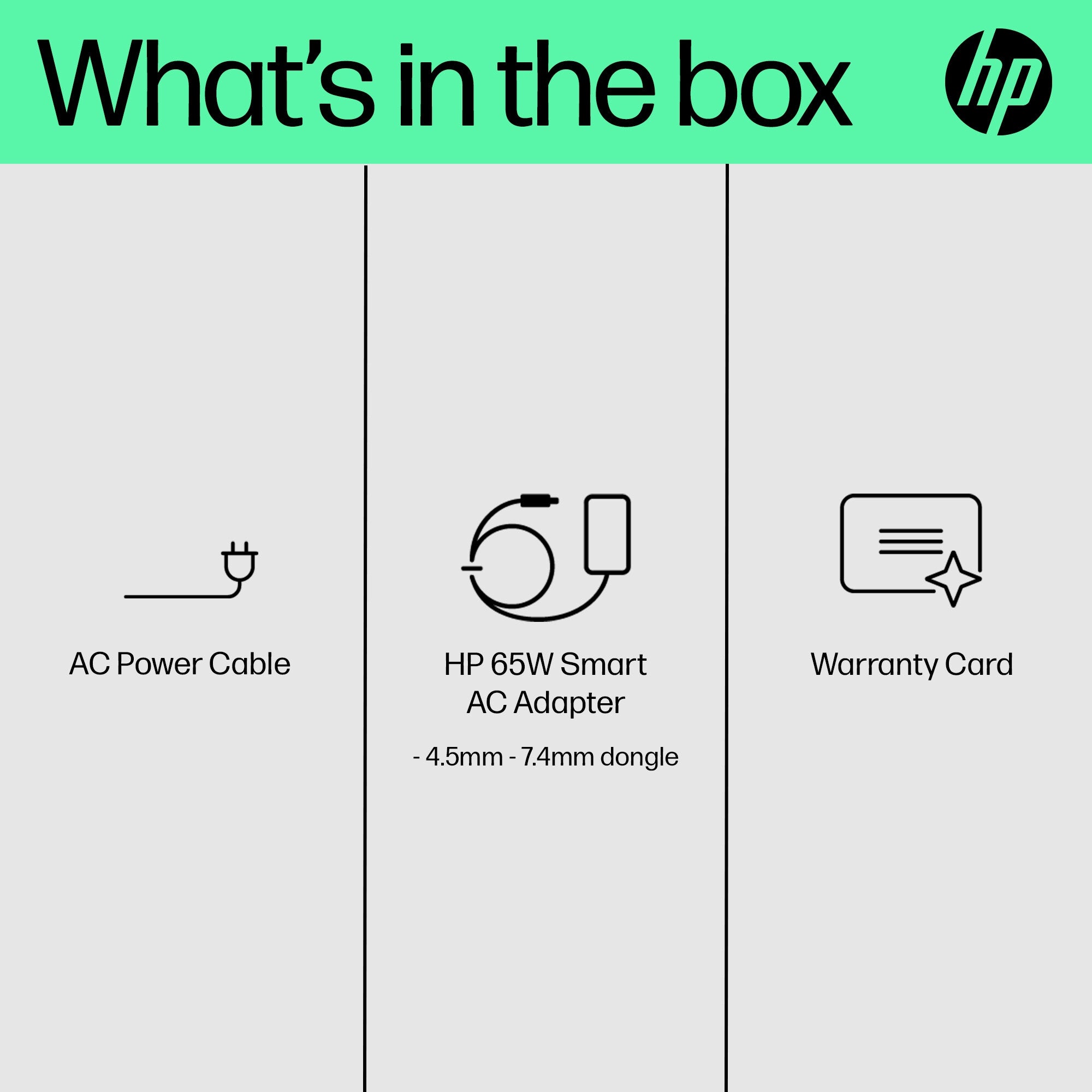 Feed your notebook with controlled servings of electricity. HP’s new 65W Smart AC Adapter regulates power and offsets electrical spikes, is designed to reduce cable stress, and includes a special dongle to support current and prior HP models – perfect for replacing your notebook’s power adapter or as a needed back-up.