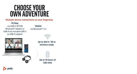 POLY Blackwire 5220 Stereo USB-C Headset +3.5mm Plug +USB-C/A Adapter (Bulk)