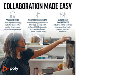 POLY Blackwire 3225 Stereo USB-C Headset +3.5mm Plug +USB-C/A Adapter (Bulk)