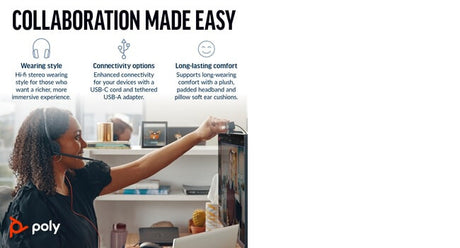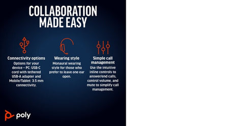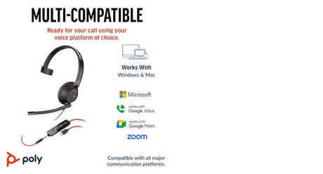 POLY Blackwire 5210 Monaural USB-C Headset +3.5mm Plug +USB-C/A Adapter