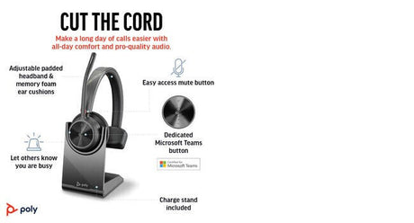 POLY Voyager 4320 Microsoft Teams Certified Headset +BT700 dongle +Charging Stand