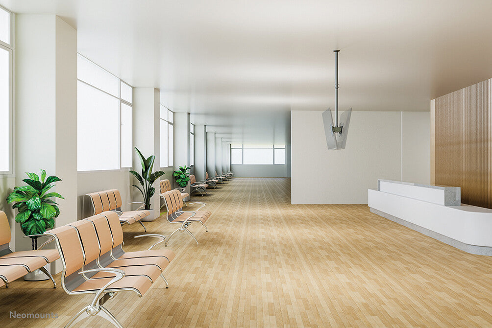 The Neomounts CL35-340BL22 is a full motion ceiling mount for two flat screens up to 43". The unique tilt (25°) and swivel (360°) technology allows the mount to change to the optimal viewing angle. Level adjustment is available for the perfect installation.