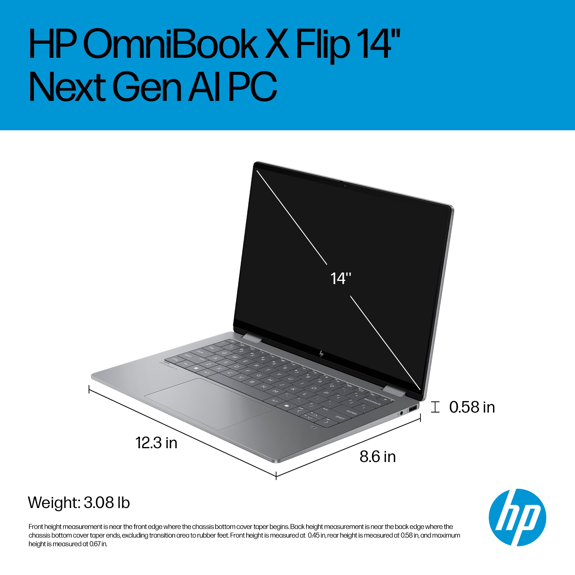 Let creativity reign with the HP OmniBook X Flip 14 Next Gen AI PC. With 4 versatile modes, this thin and light Next Gen AI PC enables you to work and play from anywhere, at any angle. AI-boosted power and speed, along with an all-day, fast-charge battery, keeps you going. While the 14" touch edge-to-edge display provides the best possible view.