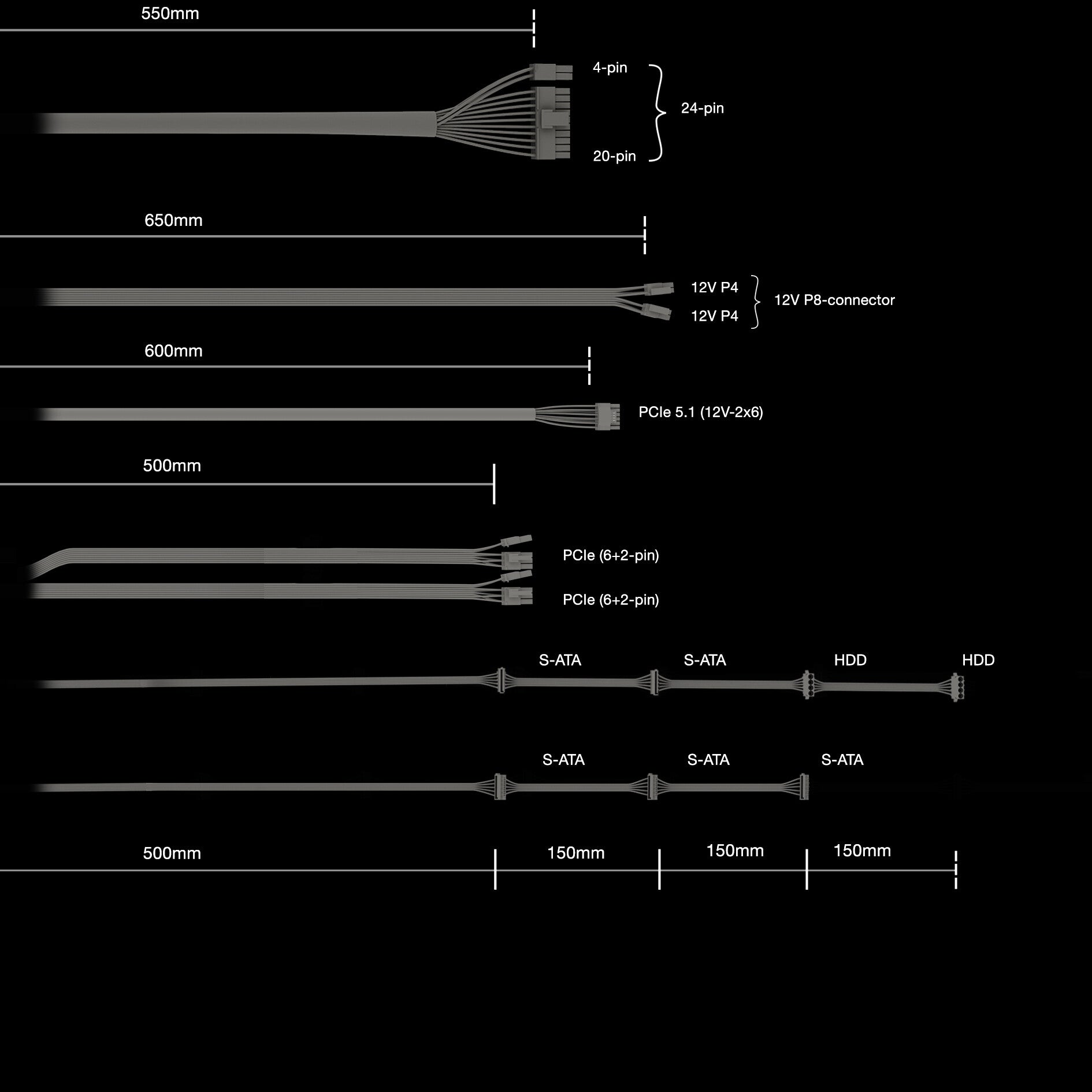 | SATA power cable length | 500,650,800 mm |