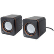 Manhattan 2600 Series Speaker System, Small Size, Big Sound, Two Speakers, Stereo, USB power, Output: 2x 3W, 3.5mm plug for sound, In-Line volume control, Cable 0.9m, Black, Three Year Warranty