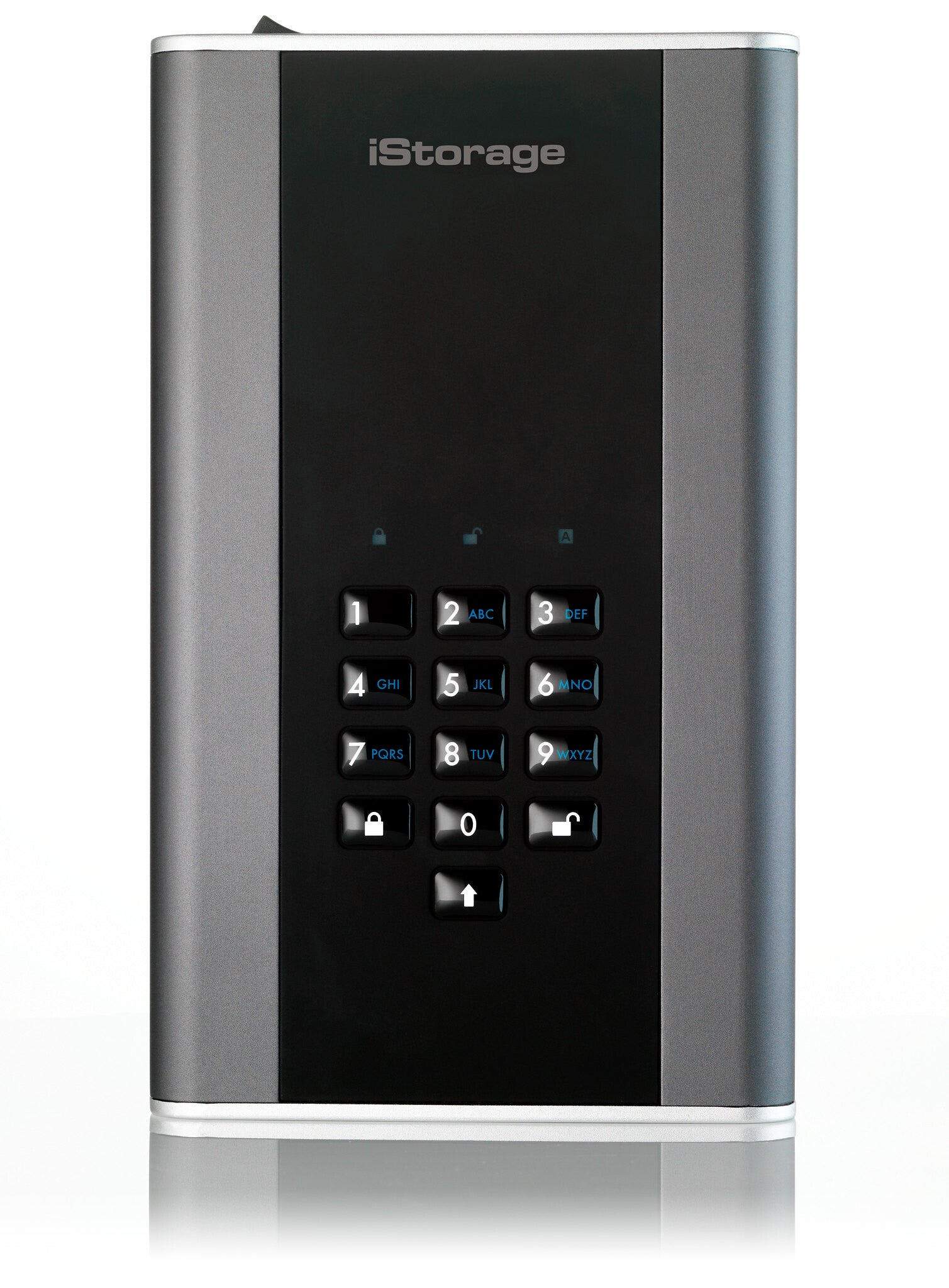 An easy to use, ultra-secure, PIN authenticated, portable USB 3.2 desktop drive with real-time AES-XTS 256-bit hardware encryption, software free design, super-fast data transfer speeds.