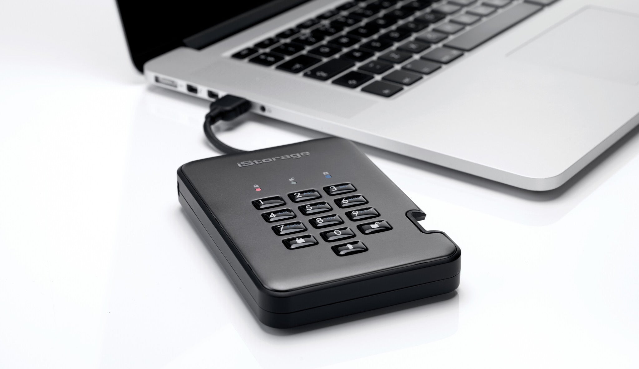 An easy to use, ultra-secure, PIN authenticated, portable USB 3.2 hard drive with real-time AES-XTS 256-bit hardware encryption, software free design, super-fast data transfer speeds.