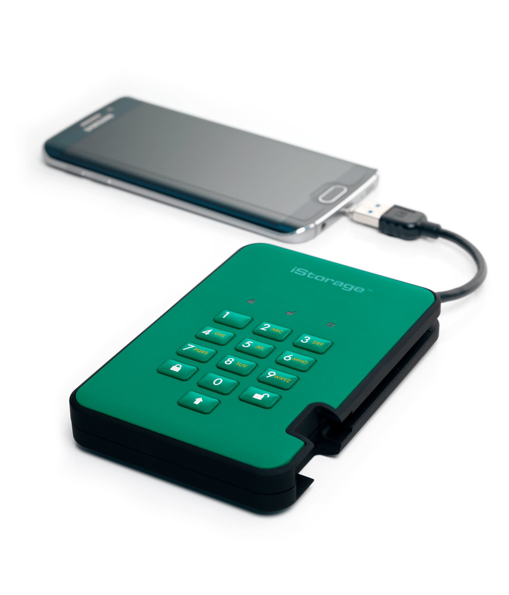 An easy to use ultra-secure, PIN authenticated, hardware encrypted, portable USB 3.2 hard drive with real-time AES-XTS 256-bit hardware encryption, software free design and super-fast data transfer speeds.