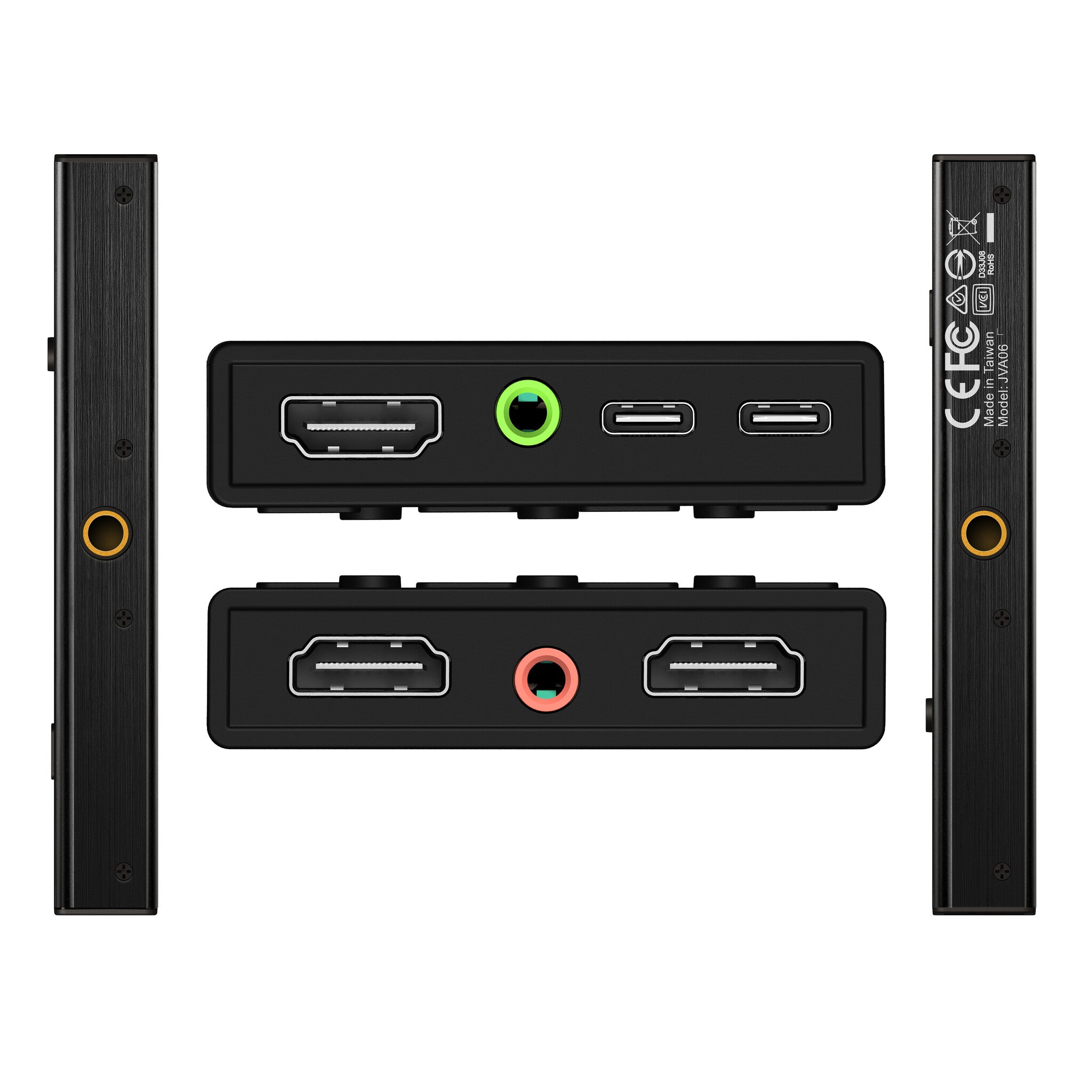 | Packaging content | 1 x JVA06 Dual HDMI™ Video Capture, 1 x Quick Installation Guide, 1 x USBxC™ 2.0 to USBxC™ cable, 1 x USBxC™ 3.0 to USB™ TypexA cable, 1 x 39.4 in./100 cm HDMI™ cable |