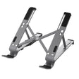 "The laptop stand is made of durable aluminum designed to support laptops and a variety of other items such as tablets, books, and similar objects. Its foldable design allows for easy storage or transport. The viewing angle and height can be adjusted to fit your needs and to optimize your viewing experience.