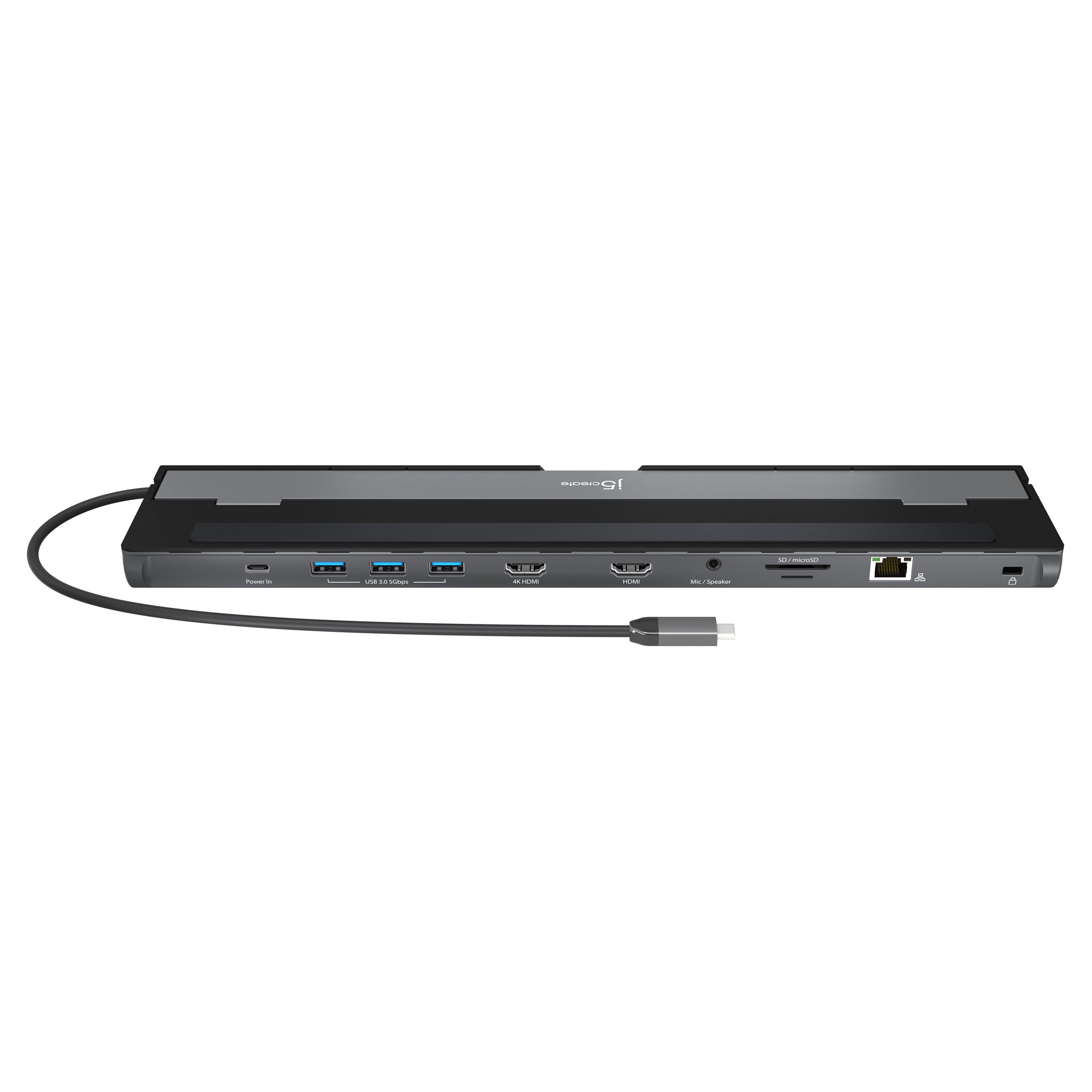 j5create JCD542-N USB-C® Dual HDMI™ Docking Station, includes 2x HDMI ports and 4x USB ports, Grey & Black
