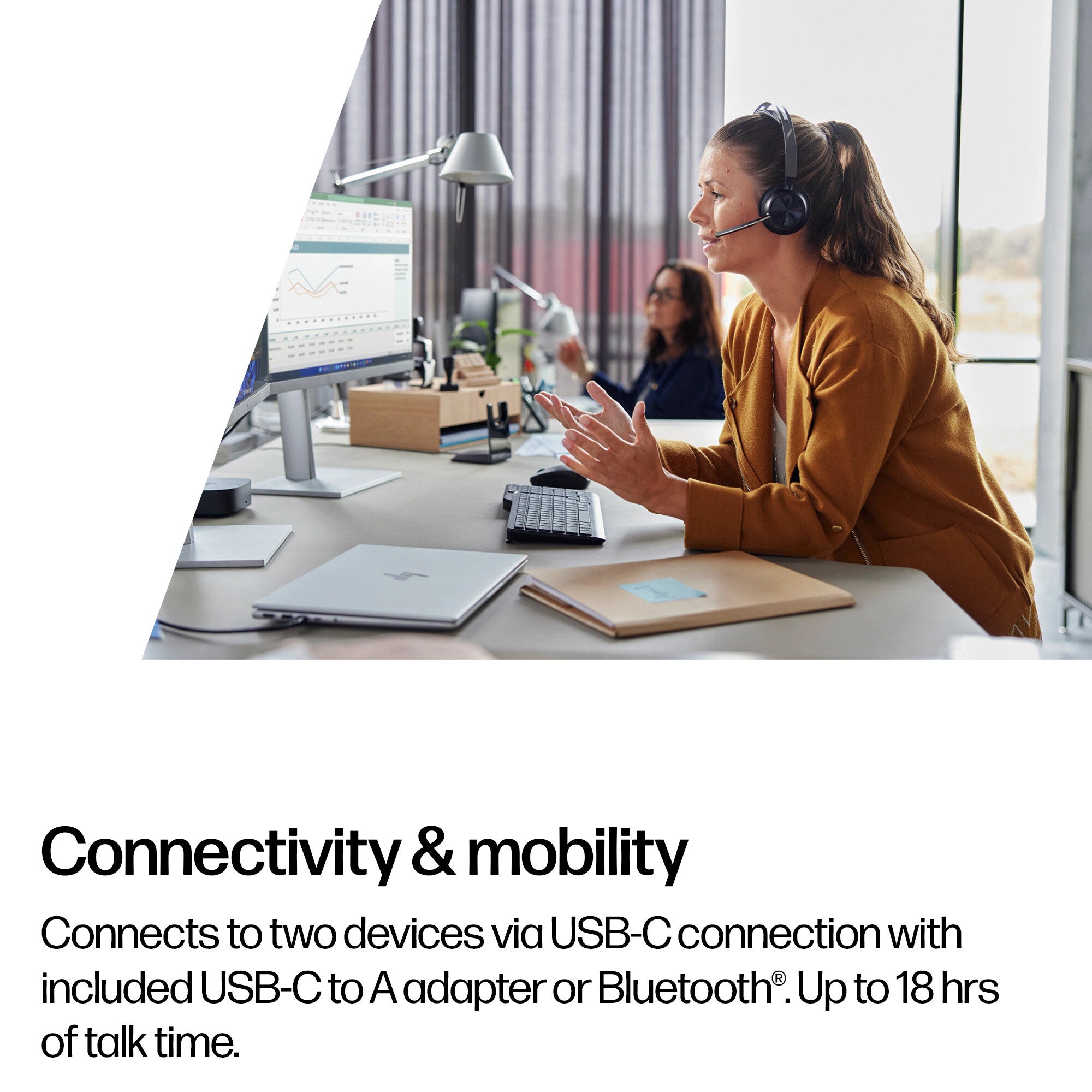 HP Poly Voyager Focus 2 Microsoft Teams Certified USB-C-C Headset +USB-C/A Adapter +Charging Stand