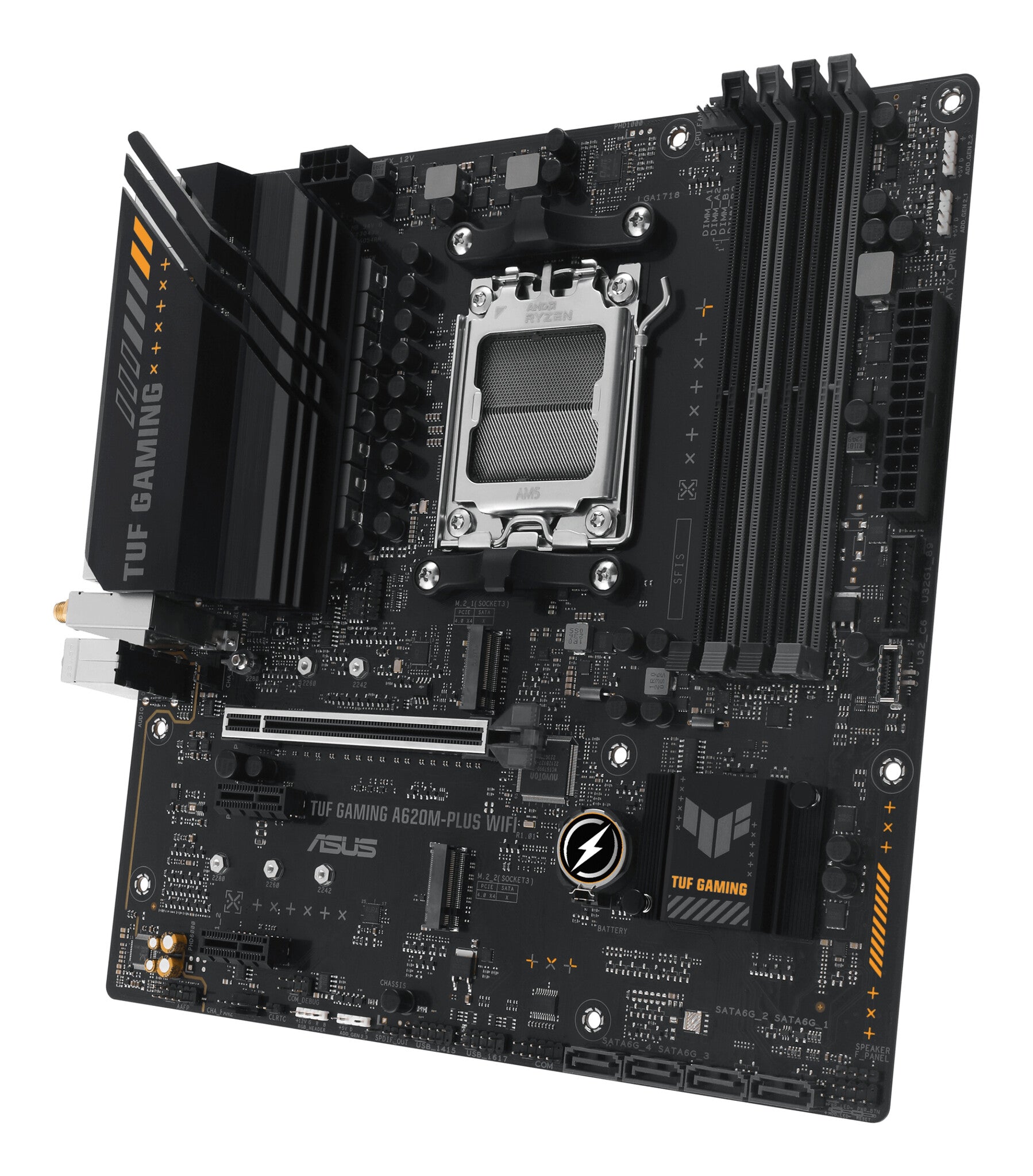 Asus TUF GAMING A620M-PLUS WIFI, AMD A620, AM5, Micro ATX, 4 DDR5, HDMI, 2 DP, Wi-Fi 6, LAN 2,5G, PCIe4, 2x M.2