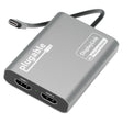 The Plugable USB-C Dual HDMI Adapter for 2 monitors (USBC-6950M) features dual 4K 60Hz HDMI ports, DisplayLink technology (driver installation required), and a sturdy aluminum design. Ideal for traditional and hybrid offices using MacBooks