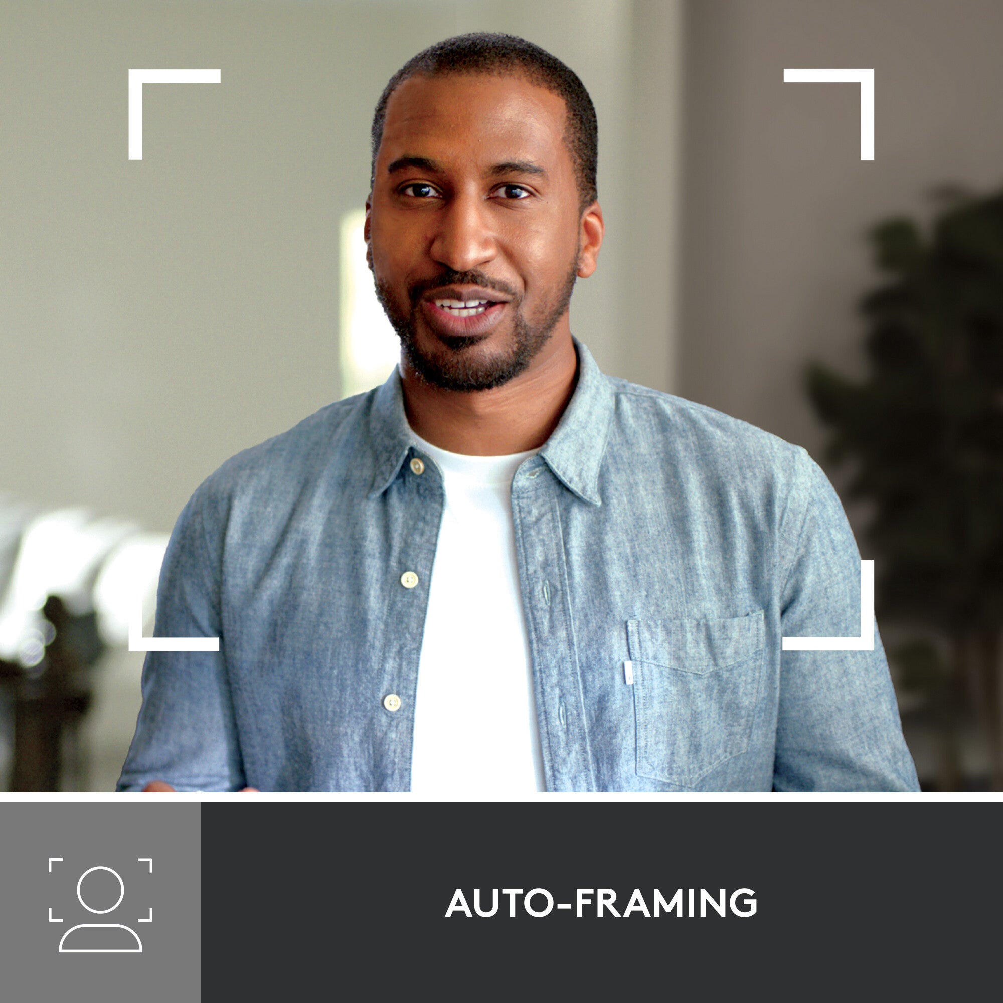 Auto-framing centers the video camera on you, allowing you to stand and move during meetings without leaving the frame