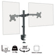 piXL Double Monitor Arm, For Upto 2x 27 inch Monitors, Desk Mounted, VESA dimensions of 75x75mm or 100x100mm, 180 Degrees Swivel, 15 Degrees Tilt, Weight Upto 10kg per screen, Built in Cable Management