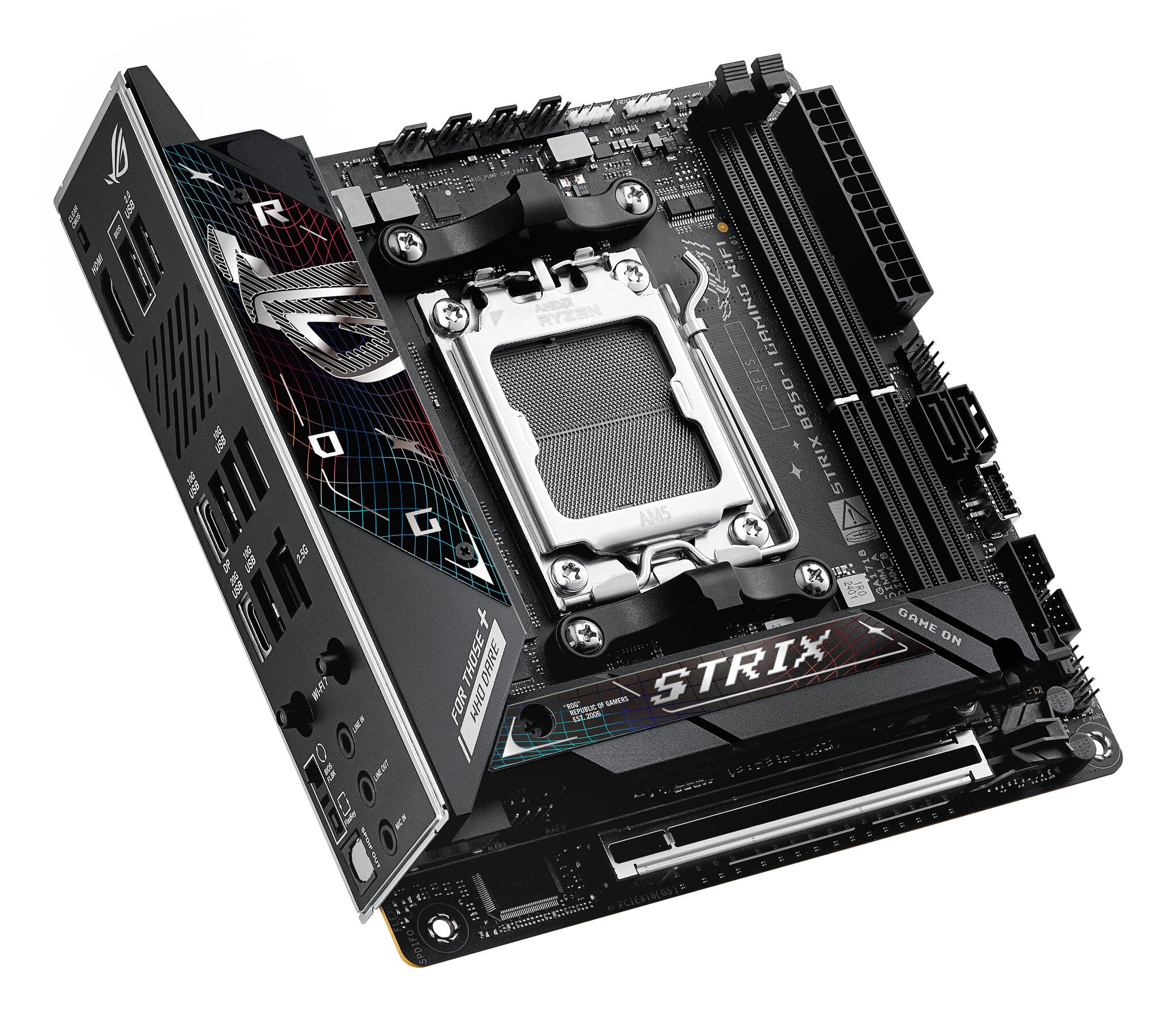 The ROG Strix B850-I Gaming WiFi integrates cutting-edge technology into a sleek mini-ITX form factor. It features PCIe® 5.0 slots for graphics and storage, dual-channel DDR5 slots and robust power delivery for top-tier gaming and heavy workloads. Meanwhile, advanced cooling solutions maintain peak performance, and WiFi 7 ensures ultra-fast connectivity. This platform delivers the power and connectivity that advanced AI PC applications demand.