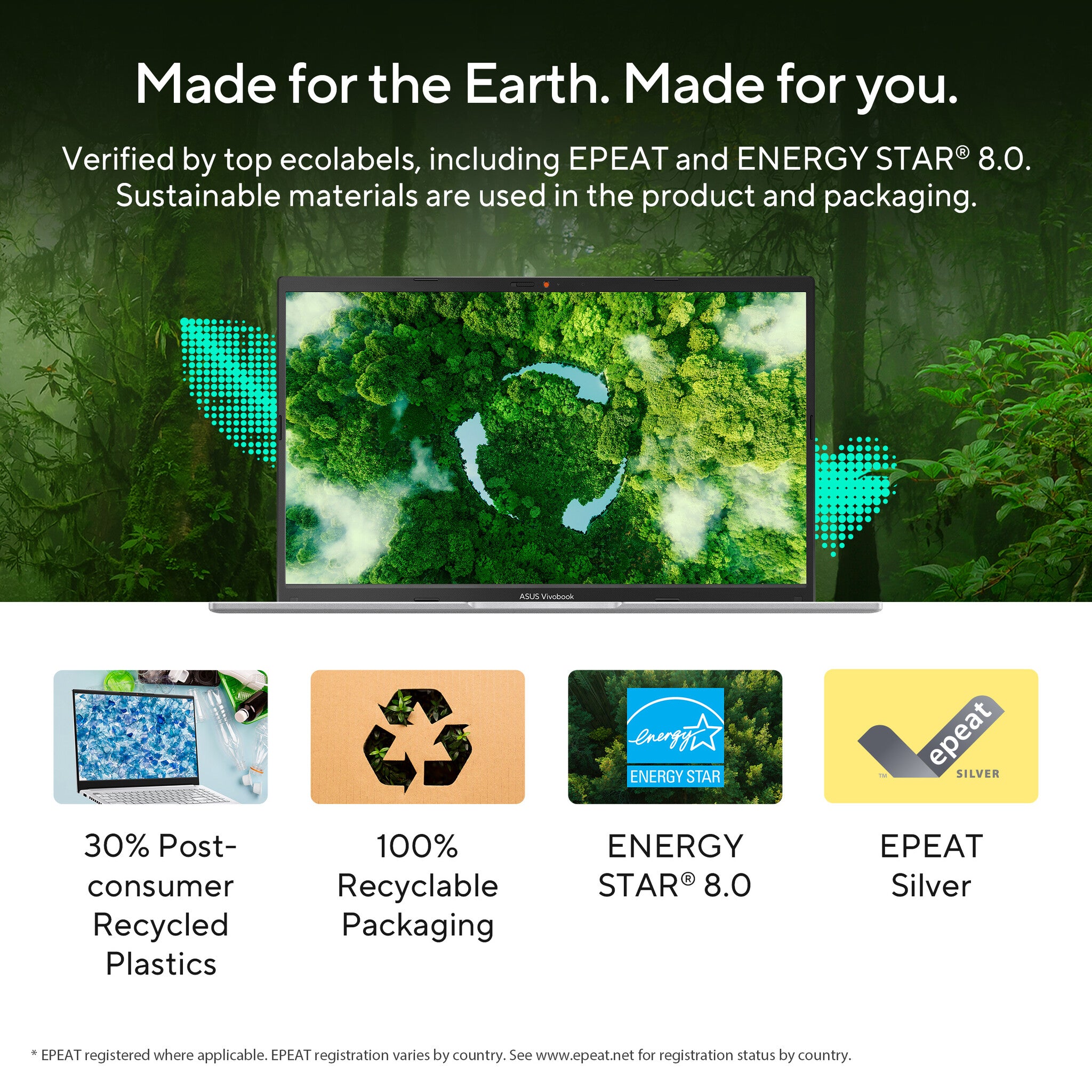 ASUS laptops5 are engineered with extraordinary toughness meet the exacting US MIL-STD-810H military-grade standard, undergoing 12 rigorous test methods and 26 punishing test procedures — exceeding industry standards. The upshot is a range of products that are renowned for reliability and durability. These factors also inherently benefit longevity and thus sustainability, so you can work, travel or relax with the confidence that your ASUS laptop is ready for the real world — today, and long into the future.