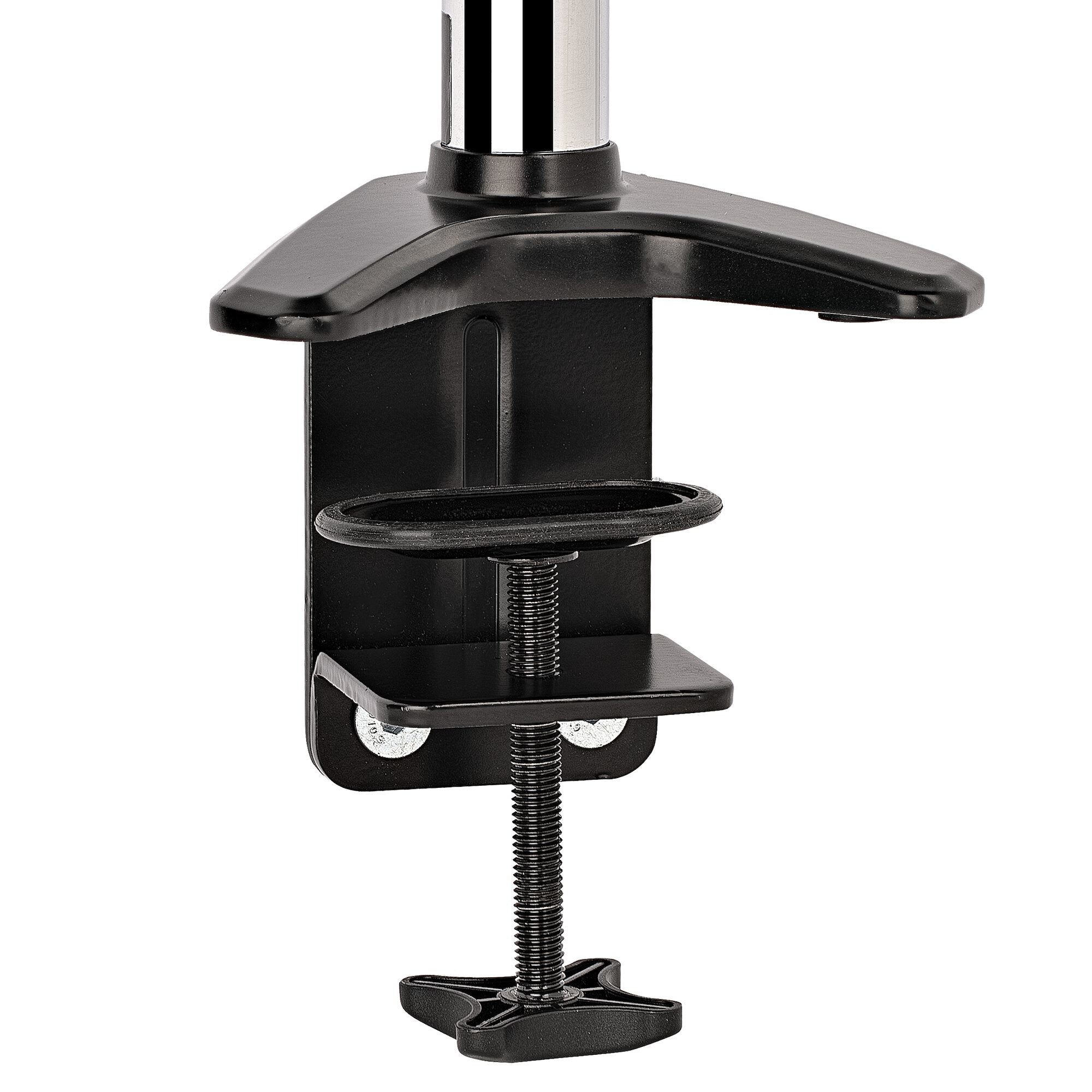 With the detachable VESA plates with quick-release clips, you can mount your display to the mount with ease. Either clamp the mount to the side of a desk up to 85mm thick, table or mount it through a grommet hole on desks up to 70mm thick.