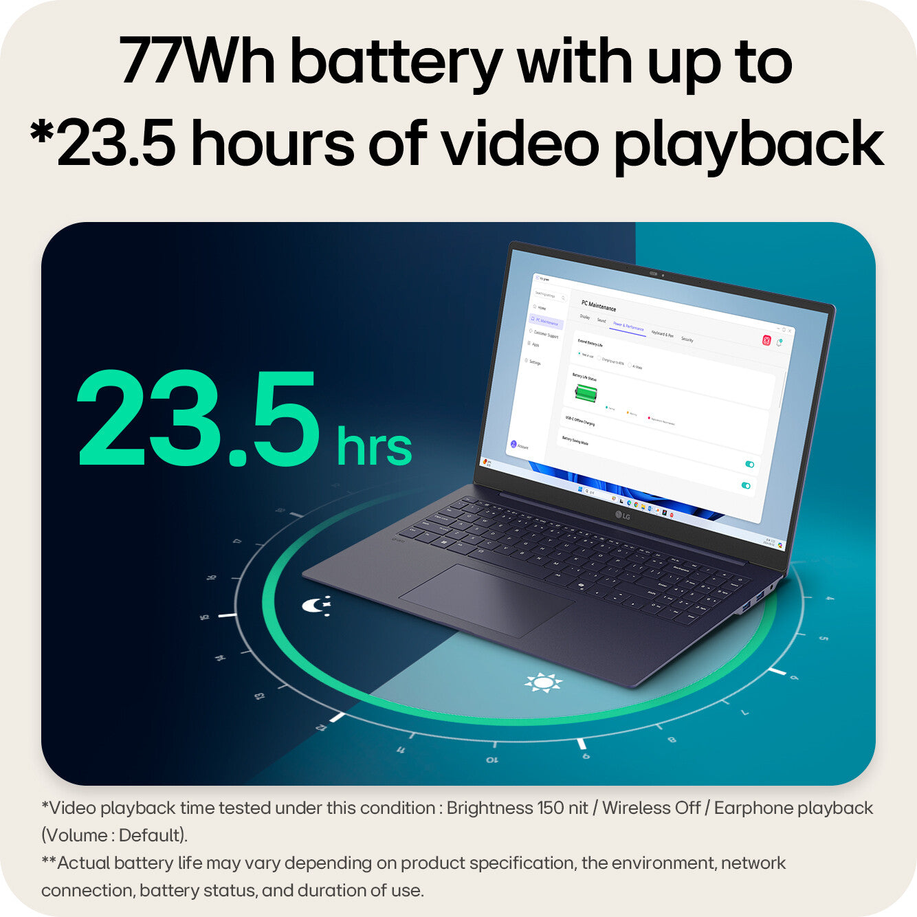 Powered by a 77Wh high-capacity battery offering up to 23.5 hours of usage time and equipped with our AI Smart Assistant, gram analyses user patterns to optimise battery efficiency. Boost your productivity and enjoy uninterrupted play.