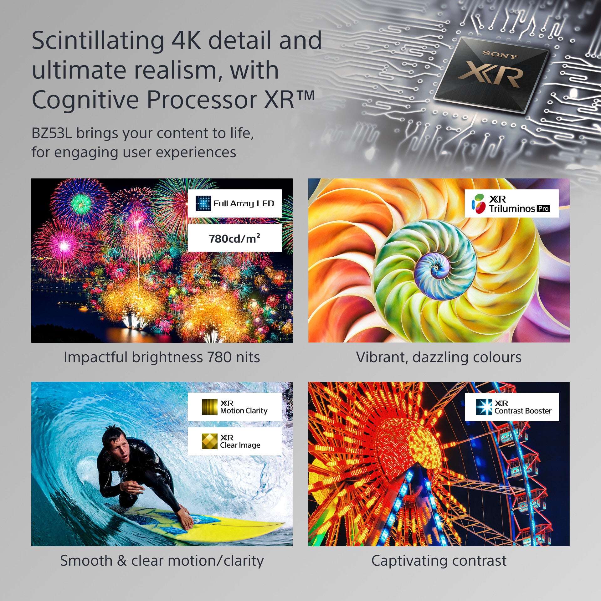 XR Triluminos Pro colour technology expresses an even wider palette of exquisitively lifelike hues and tones, thanks to Sony’s unique Cognitive Processor XR processor.