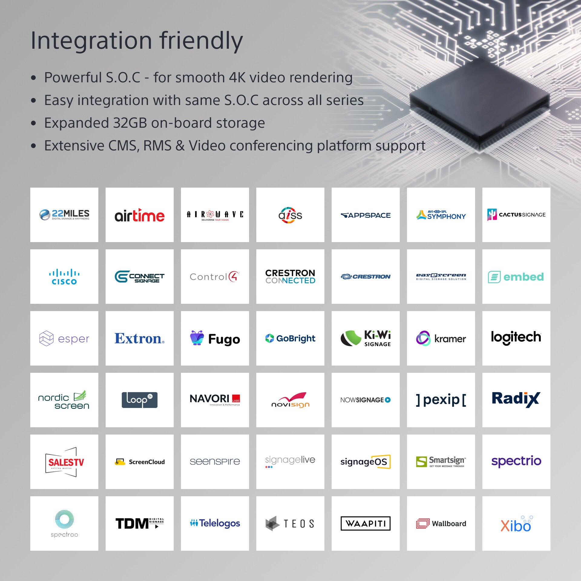 Easy integration & network of supported AV solutions
