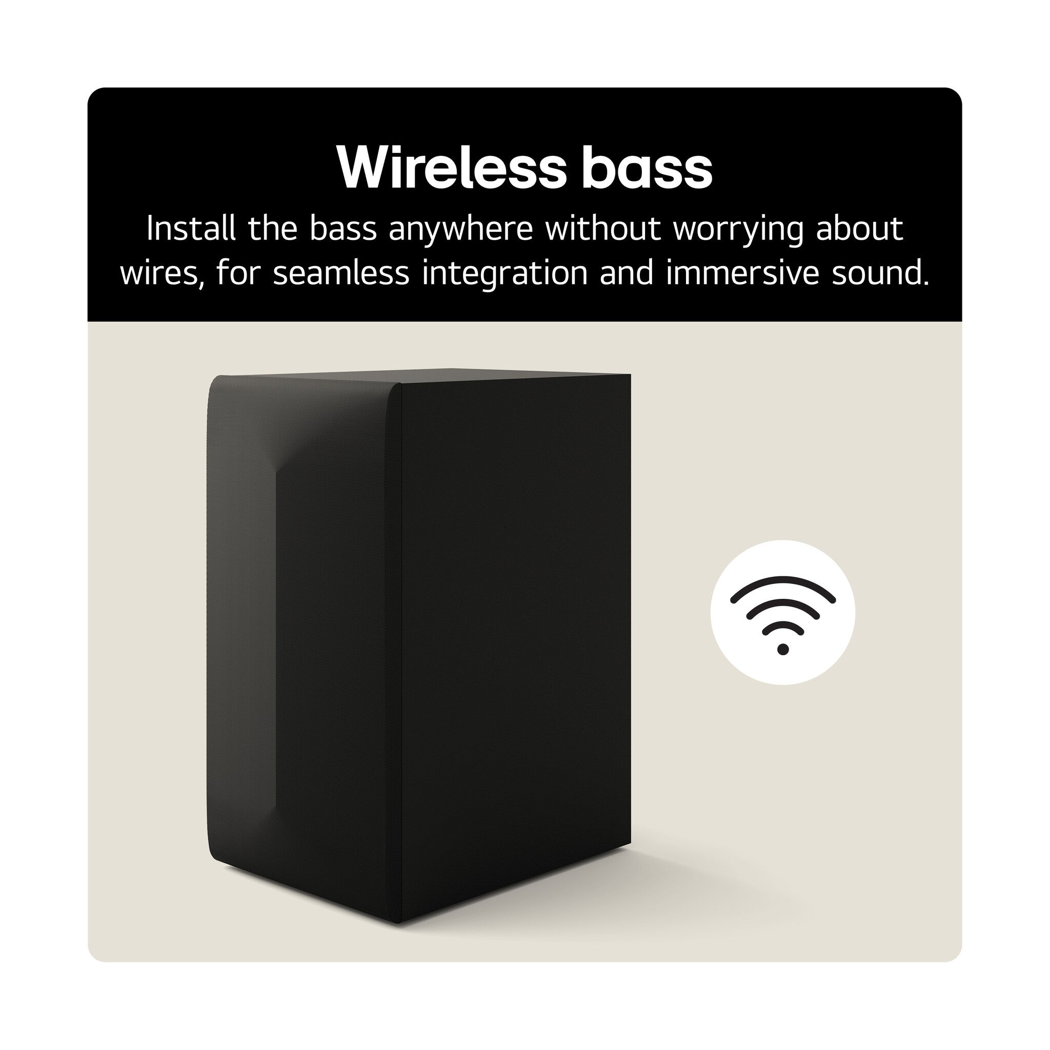 The wireless subwoofer is easy to install in your living room. Simply plug the subwoofer into the wall and it will automatically and wirelessly pair with the sound bar.