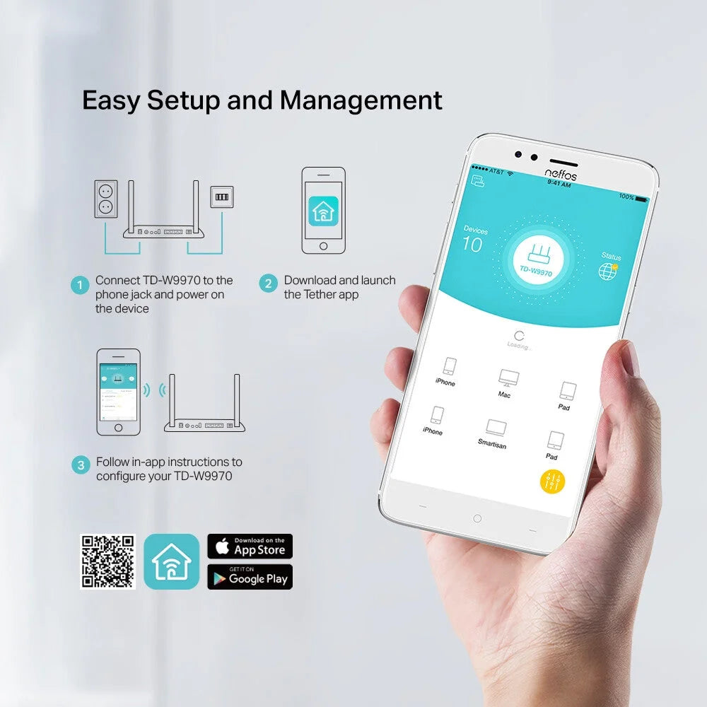 TP-LINK (TD-W9970) Modem-routeur sans fil VDSL2/ADSL2+ 300 Mbps, 4 ports, double WAN, USB