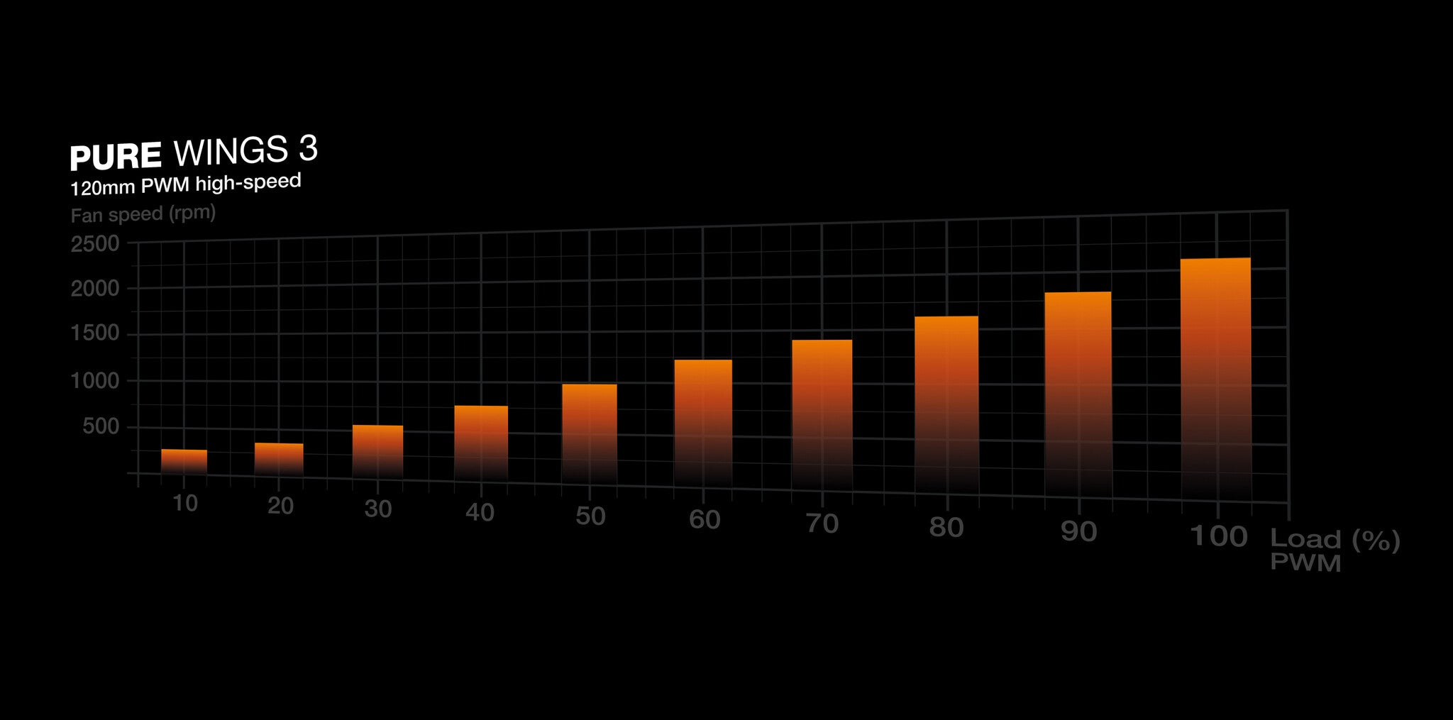 Pure Wings 3 120mm PWM high-speed Triple Pack features a closed loop motor. This technology is comparable with the cruise control in cars. When working against resistance, for example a fan grill or radiator, fans spin slower as a result. The closed loop motor technology constantly monitors the current fan speed and increases it to the target rpm, if necessary. As a result, Pure Wings 3 120mm PWM high-speed Triple Pack always operates at the desired speed, no matter the resistance.