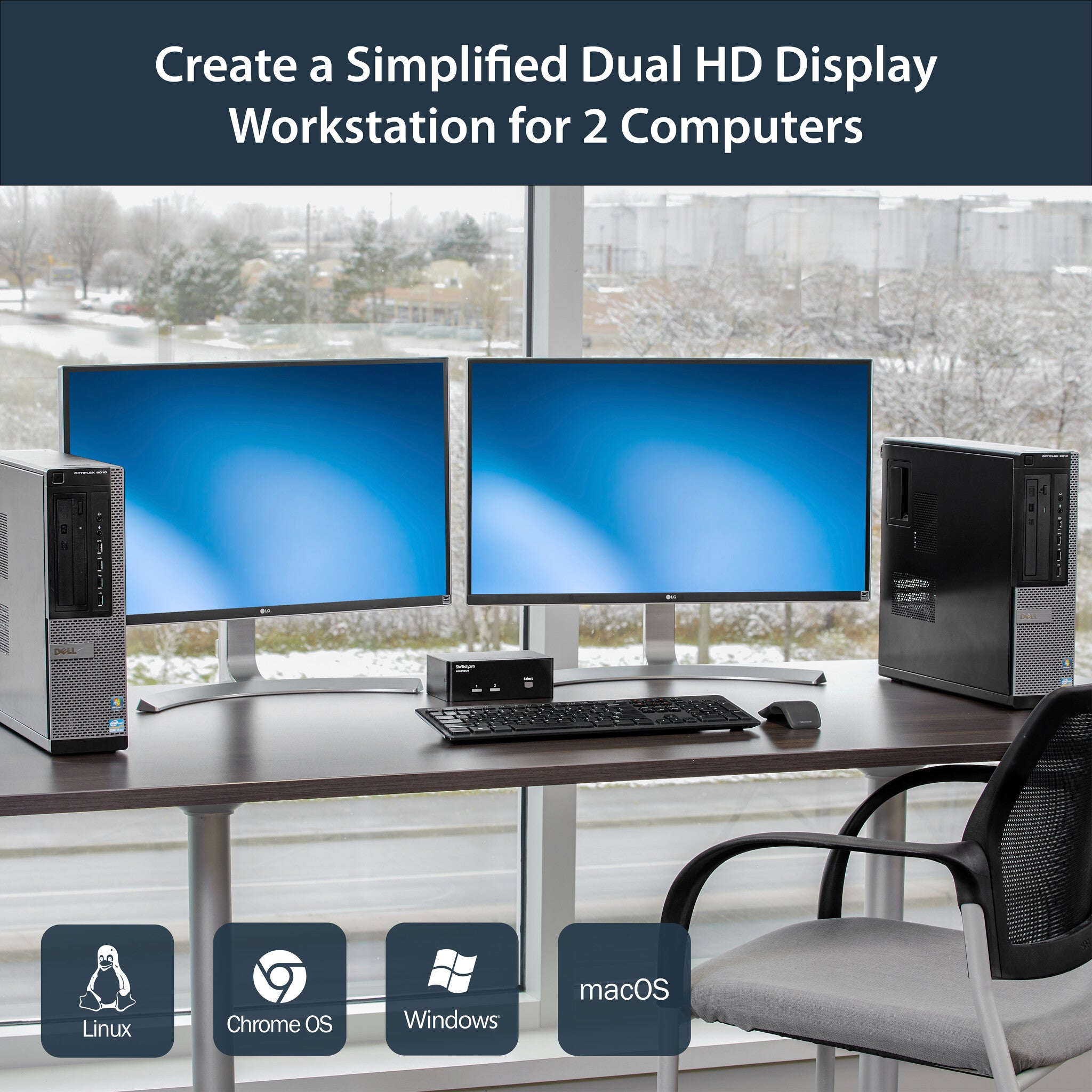 Control 2 high-resolution dual DisplayPort computers with a single console