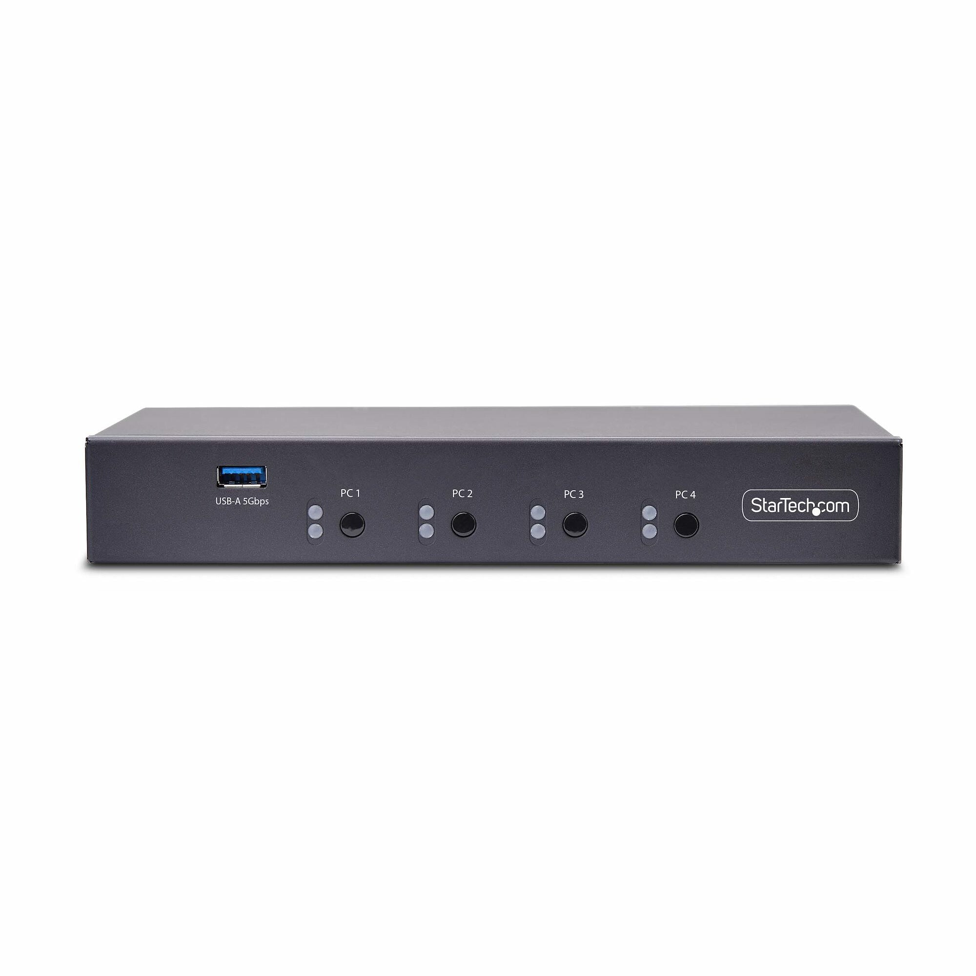 StarTech.com 4-Port KM Switch with Mouse Switching, USB Switch for Keyboard/Mouse, 3.5mm/USB Audio, Peripheral Sharing for 4 Computers, TAA Compliant