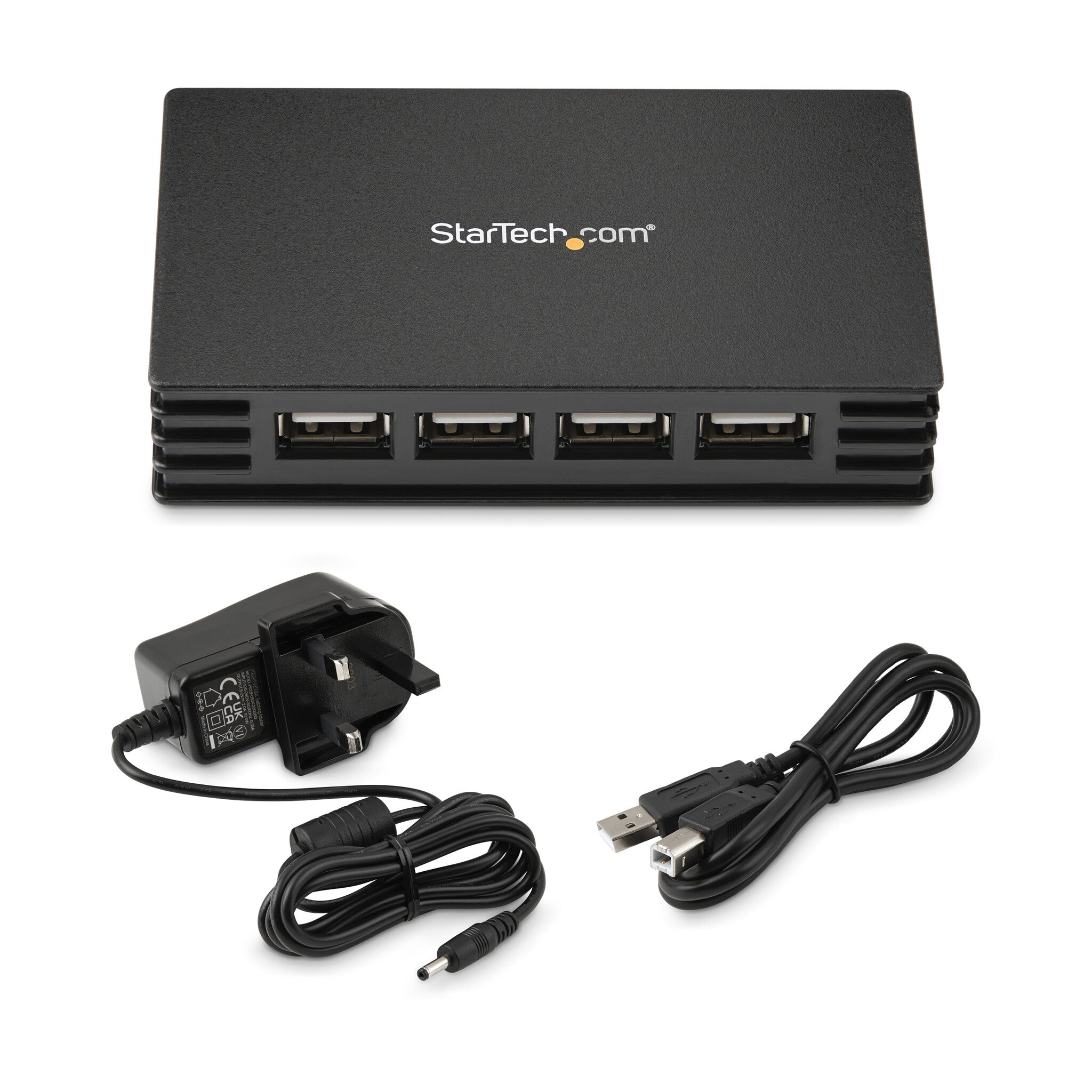 The USB 2.0 hub offers an attractive black casing that suits any operating environment and includes a 3ft USB 2.0 A/B male-male cable, for the connection between the hub and the host computer.