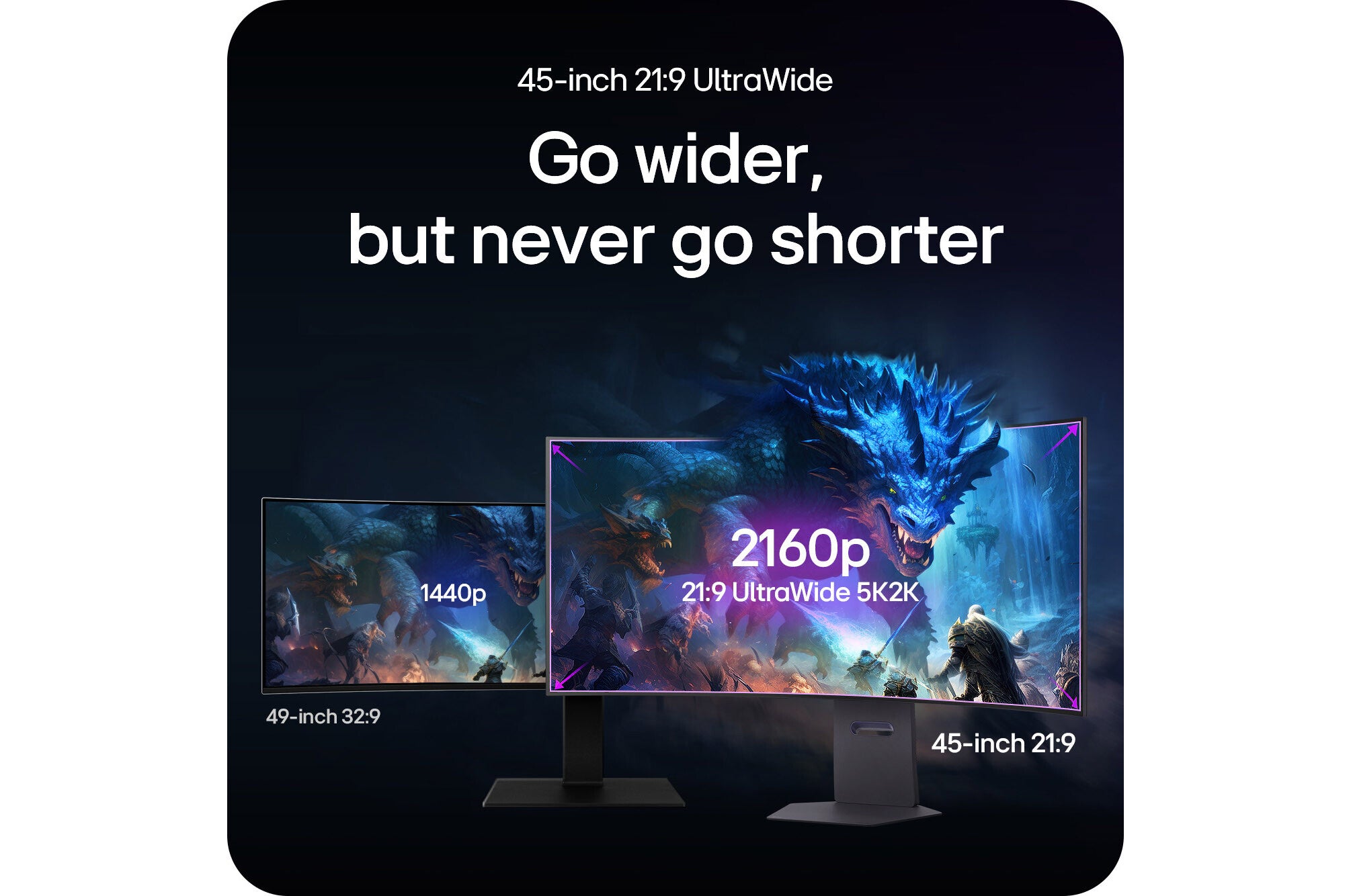 The world's first 45-inch 5K2K (5120x2160) OLED display provides a 34% wider view than standard 16:9 displays and a 33% increase in pixel count over UHD (3840x2160). This 5K2K OLED represents boldly more darker shadows, brigher lights and vibrant colours while gameplay in any environments.