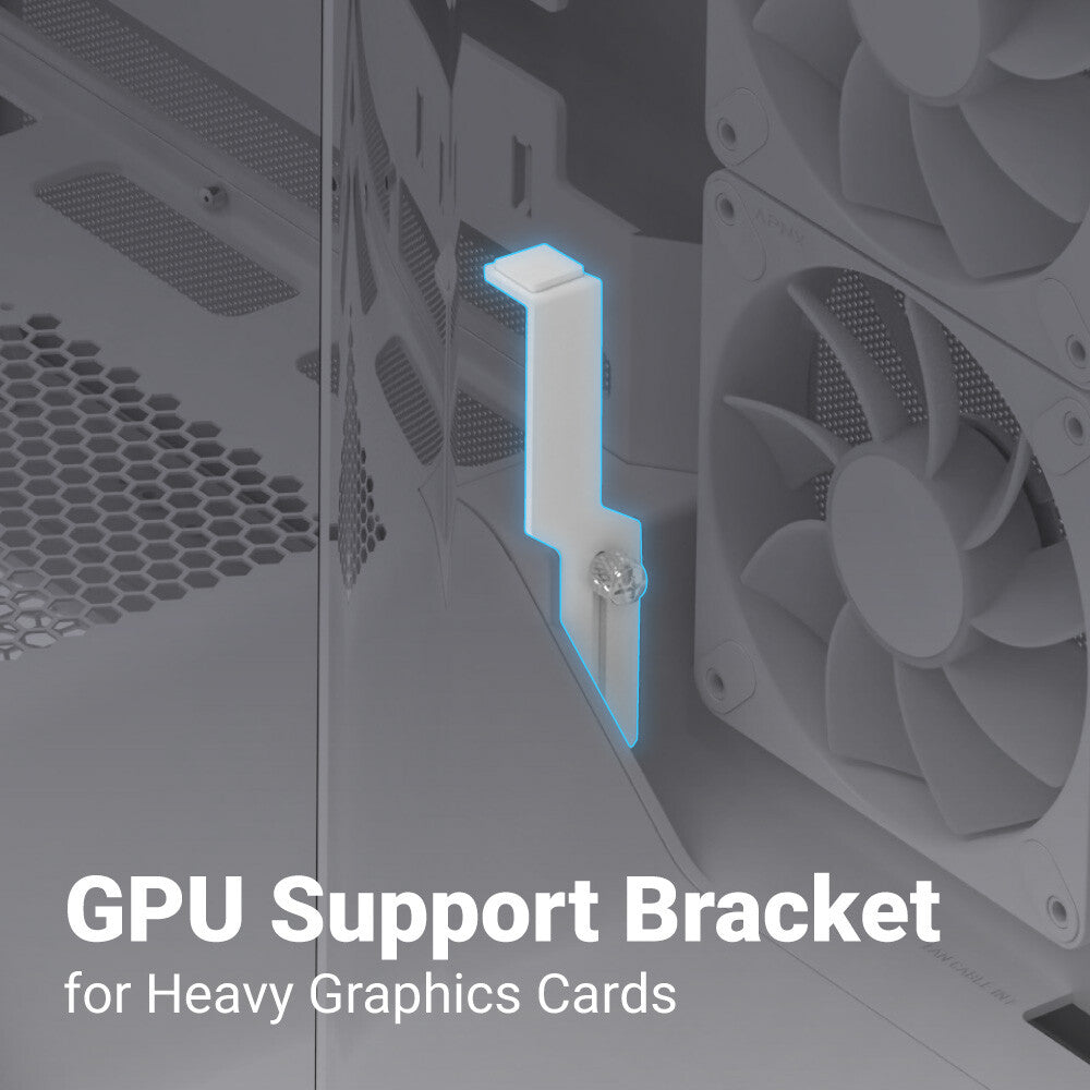 The built-in adjustable GPU support bracket secures heavy graphics cards and prevents long-term sag. Customize the height to fit your setup perfectly and protect your investment with confidence.