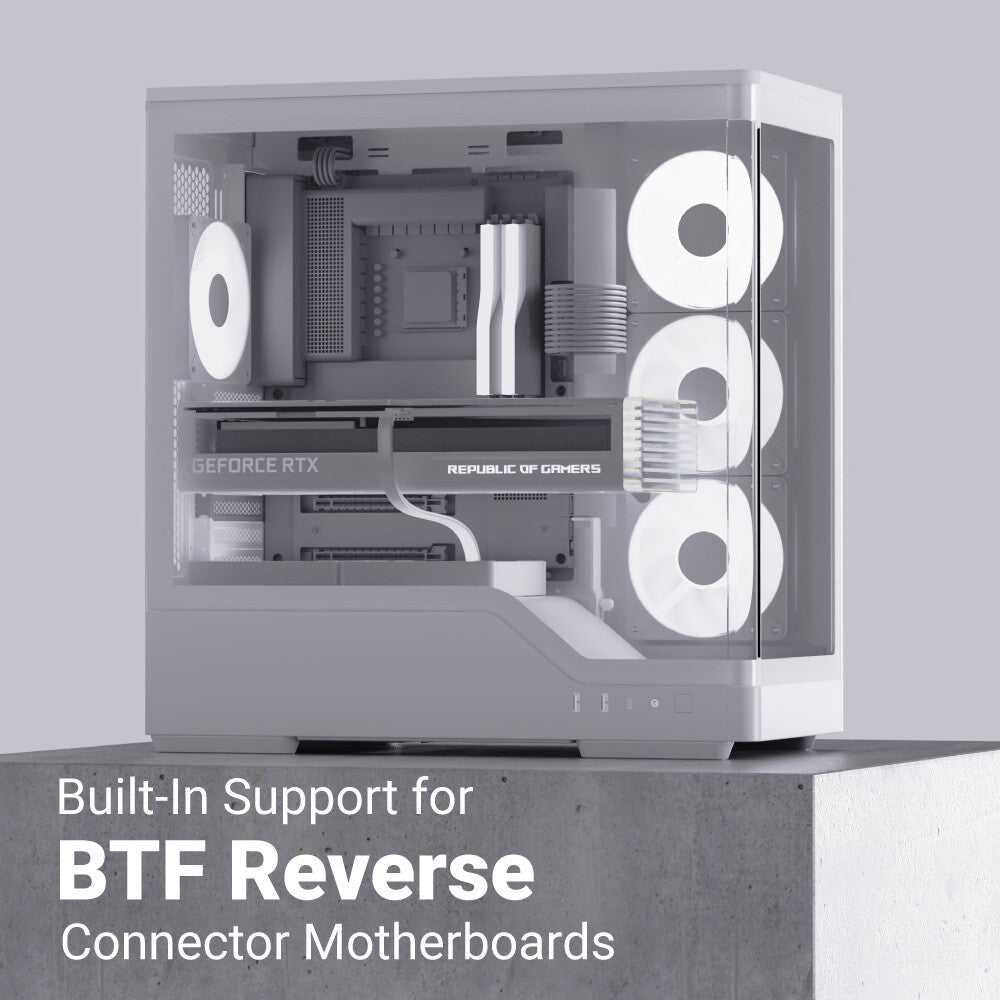 Designed for mainstream BTF reverse connector motherboards to route cables behind the motherboard tray. Enjoy a clean, professional look with uninterrupted component visibility and easier airflow.