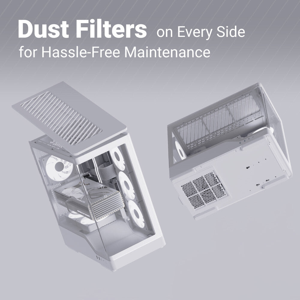 Removable nylon filters on the top and bottom keep out dust while allowing smooth airflow. Maintenance stays simple while your components stay cleaner, longer.